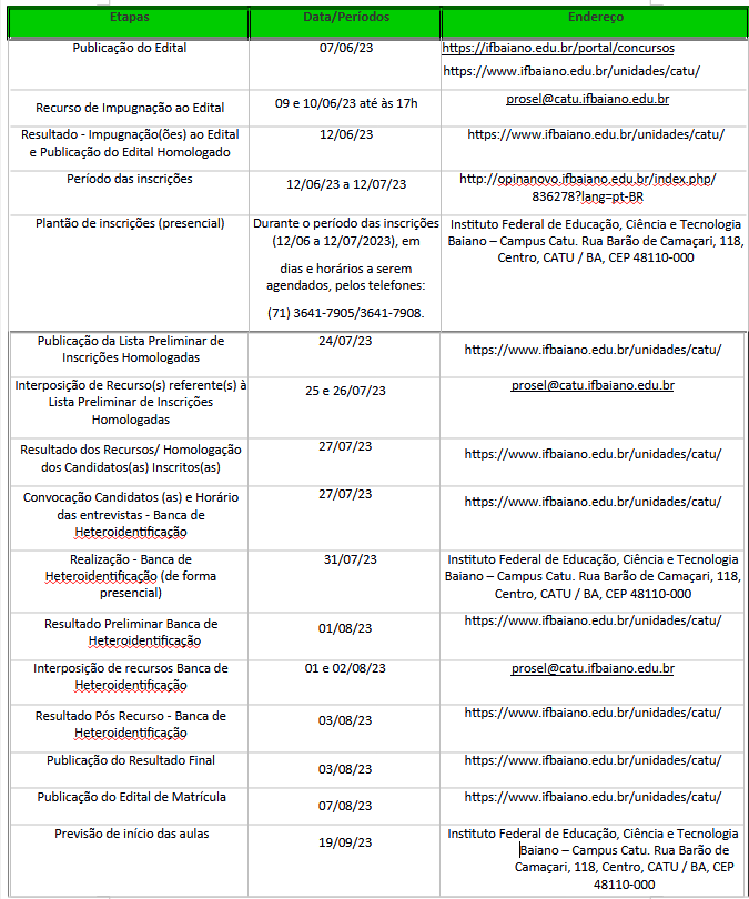 RETIFICAÇÃO – BANCAS DE HETEROIDENTIFICACAO PROEJA E SUBSEQUENTE CATU 2023