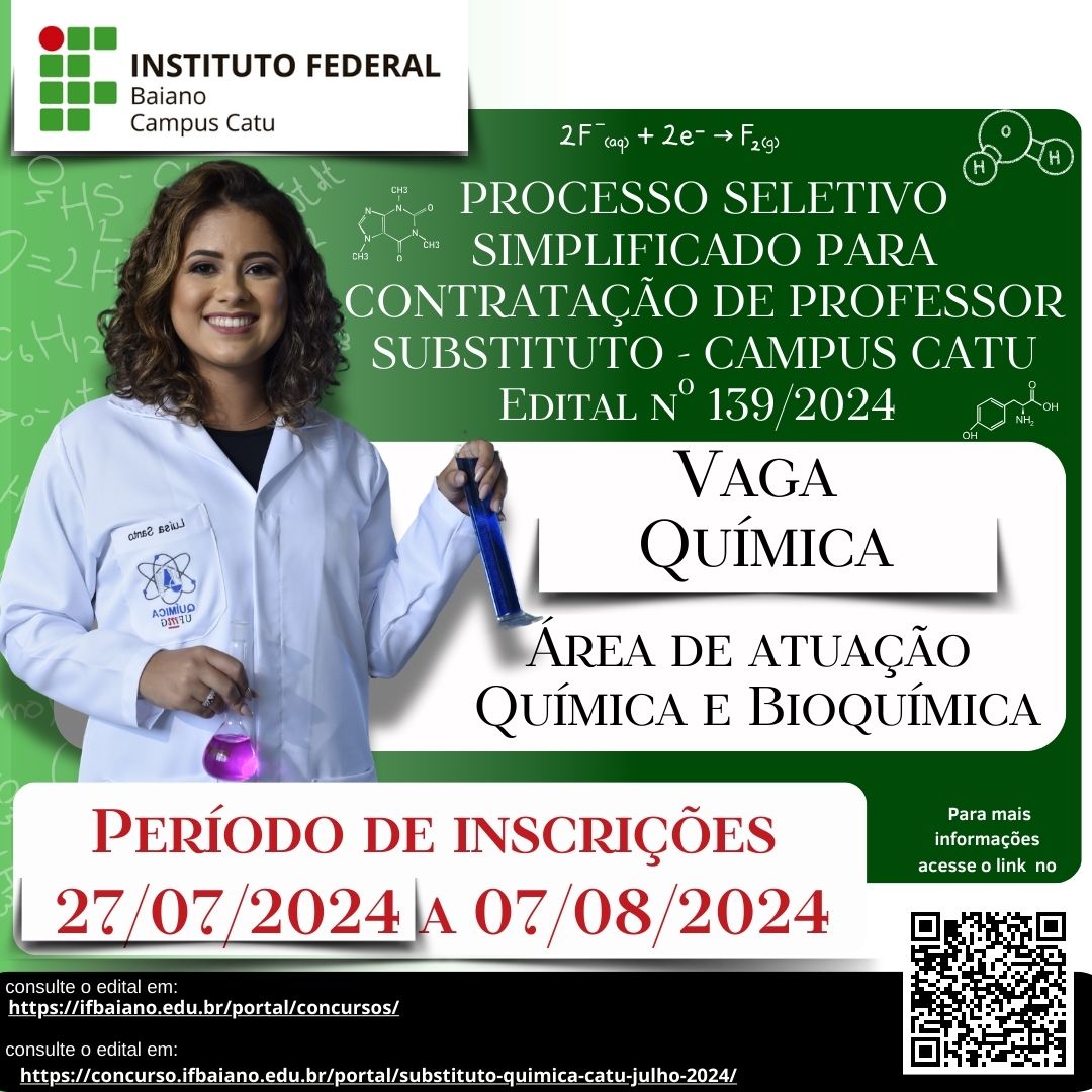 Edital de convocação para Prova Didática – Química – Campus Catu – 15-08-2024 (quinta- feira)