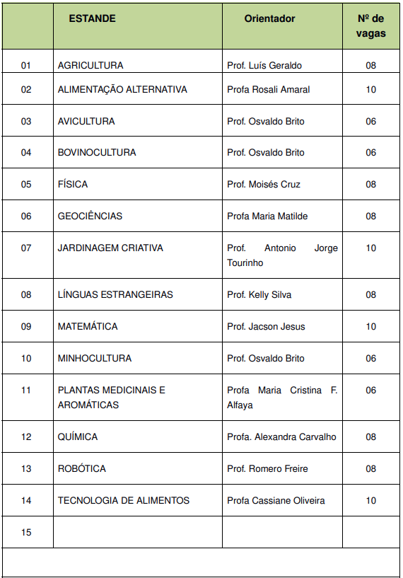 Os Estandes do Programa Ciência Itinerante são integrados por estudantes do Campus Catu (dos Cursos Integrados, Subsequentes, Proeja e Ensino Superior) que, sob a orientação de um docente ou servidor técnico do Instituto desenvolvem atividades de estudos, desenvolvimento e/ou aquisição de materiais para as apresentações e participação nas exposições para as quais o PCI é convidado.
