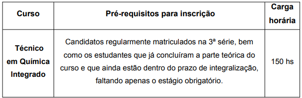 VAGAS – TÉCNICO EM QUÍMICA INTEGRADO
