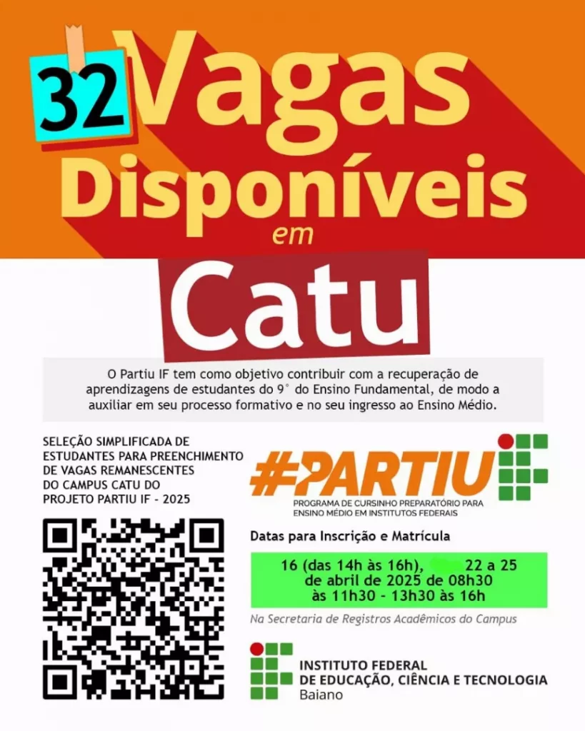 As inscrições estão abertas e vão até 30 de março de 2025. Leia o edital e inscreva-se em concurso.ifbaiano.edu.br/portal/selecao-estudantes-partiuif-marco-2025/