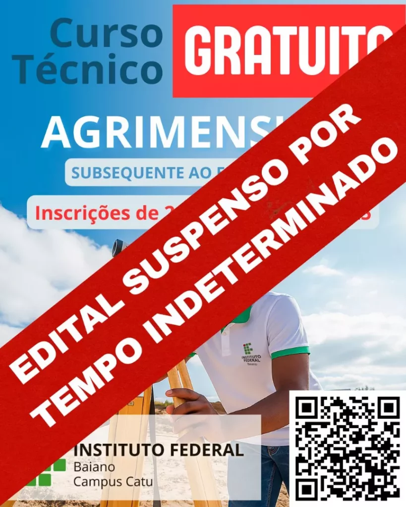Inscrições abertas para o Curso Técnico em Agrimensura, na forma subsequente ao ensino médio, presencial, para o Campus Catu, com aulas a serem possivelmente realizadas no Centro de Referência, no município de Mata de São João-BA, por meio de MANIFESTAÇÃO DE INTERESSE e conforme edital disposto abaixo.