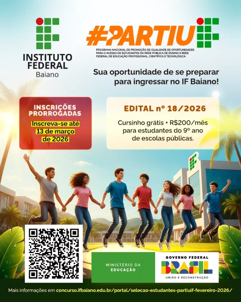 Edital disponível em: https://concurso.ifbaiano.edu.br/portal/selecao-estudantes-partiuif-fevereiro-2026/