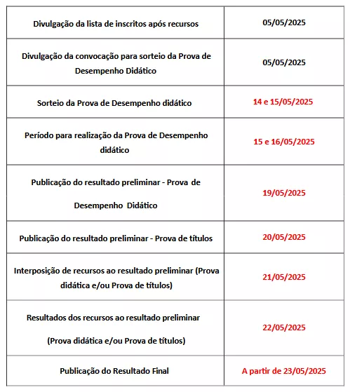 Dia: 17/06/2025 (terça-feira) – Sorteio de tema da prova didática (online)