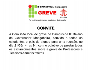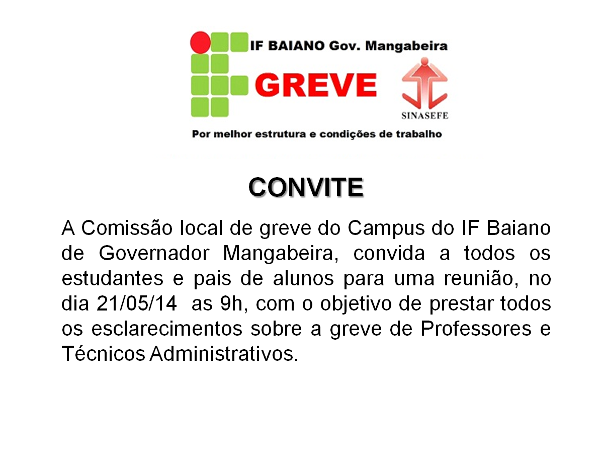 A comissão local de greve convite estudantes e responsáveis para uma reunião no dia 21/05, às 9 horas.