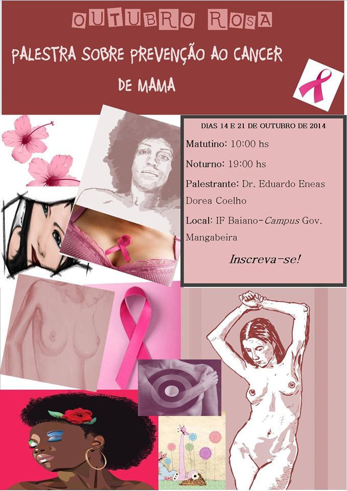 Nos dias 14 e 21 de Outubro de 2014 a Coordenação de Assuntos Estudantis do Campus Governador Mangabeira promoverá palestras sobre “O Outubro Rosa” (movimento mundial pela prevenção do câncer de mama).