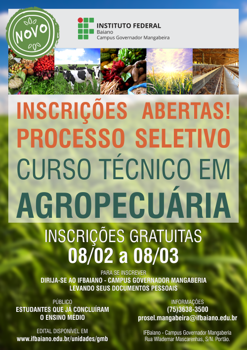 Local de inscrições: Secretaria do Campus Governador Mangabeira.