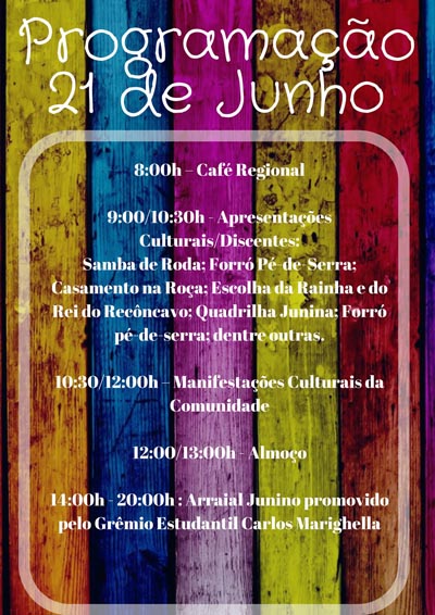 Dias 10 e 21 de junho de 2017 a festa da cultura acontece no IF Baiano – campus Gov. Mangabeira.