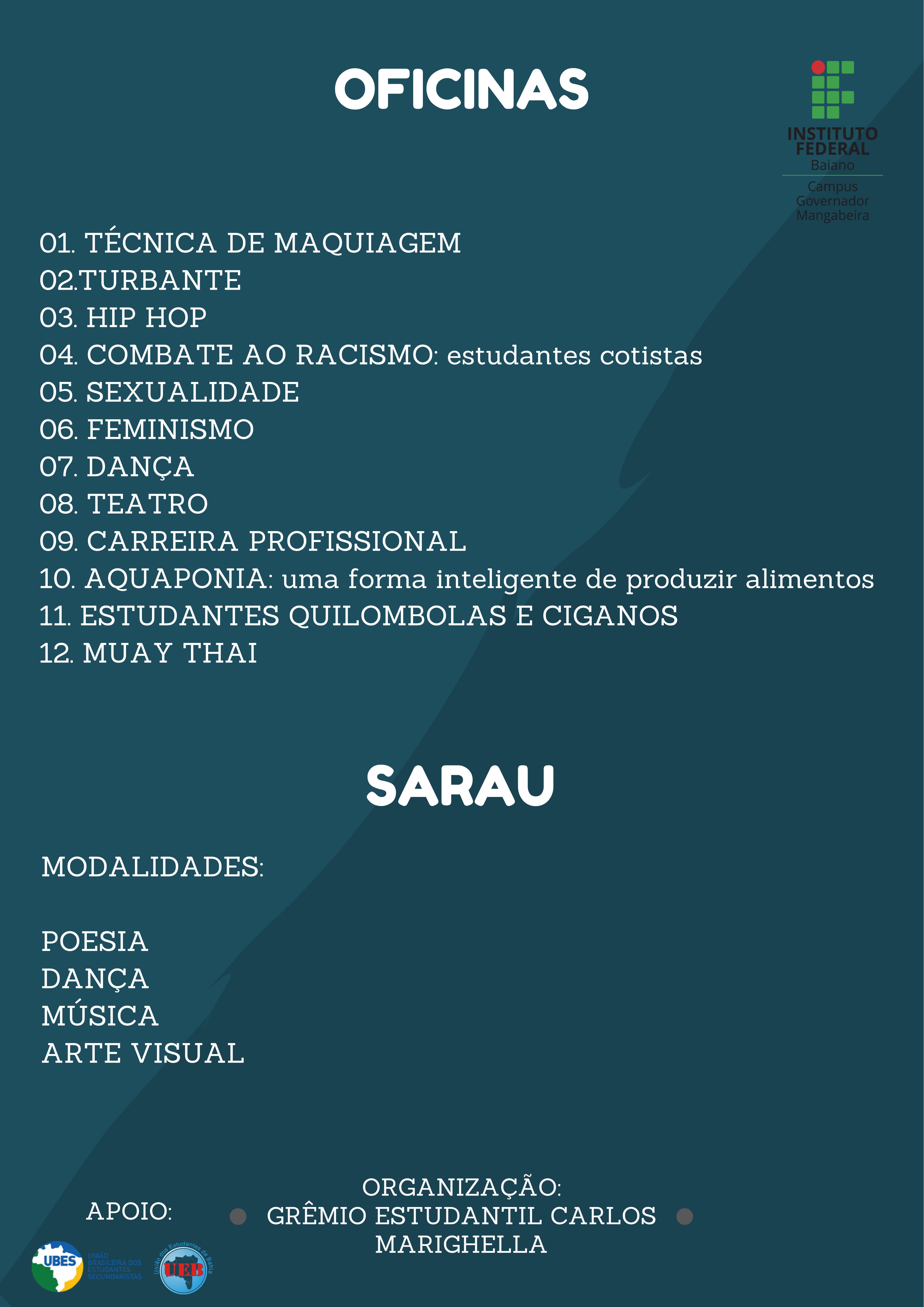 Durante o evento haverá Palestras, oficinas, apresentações culturais e muito mais.