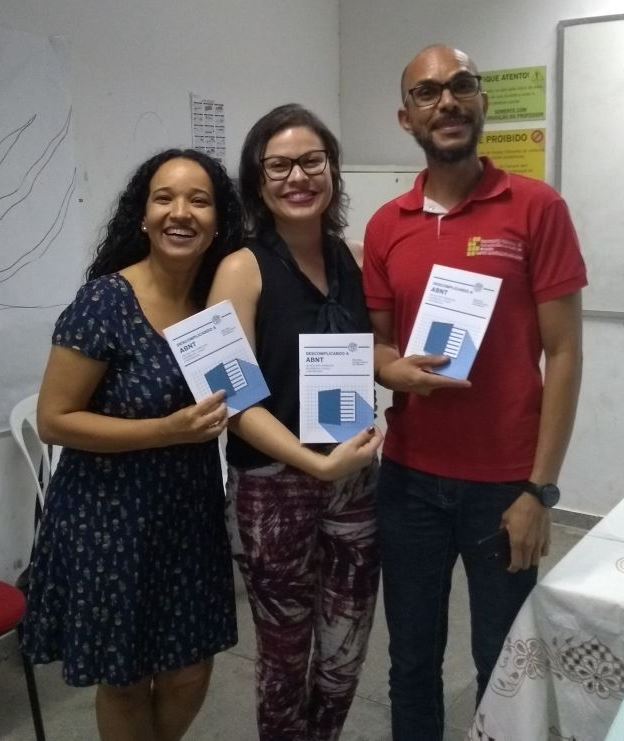 Além da certificação, houve o lançamento do livreto “Descomplicando a ABNT: um guia para trabalhos acadêmicos, citação e referências” de autoria de Fernanda Oliveira, de Sara Mamona e de Elisio Silva. A publicação foi pensada com o intuito de contribuir para formação acadêmica no tocante à normalização dos trabalhos científicos facilitando o acesso às normas da Associação Brasileira de Normas Técnicas.
