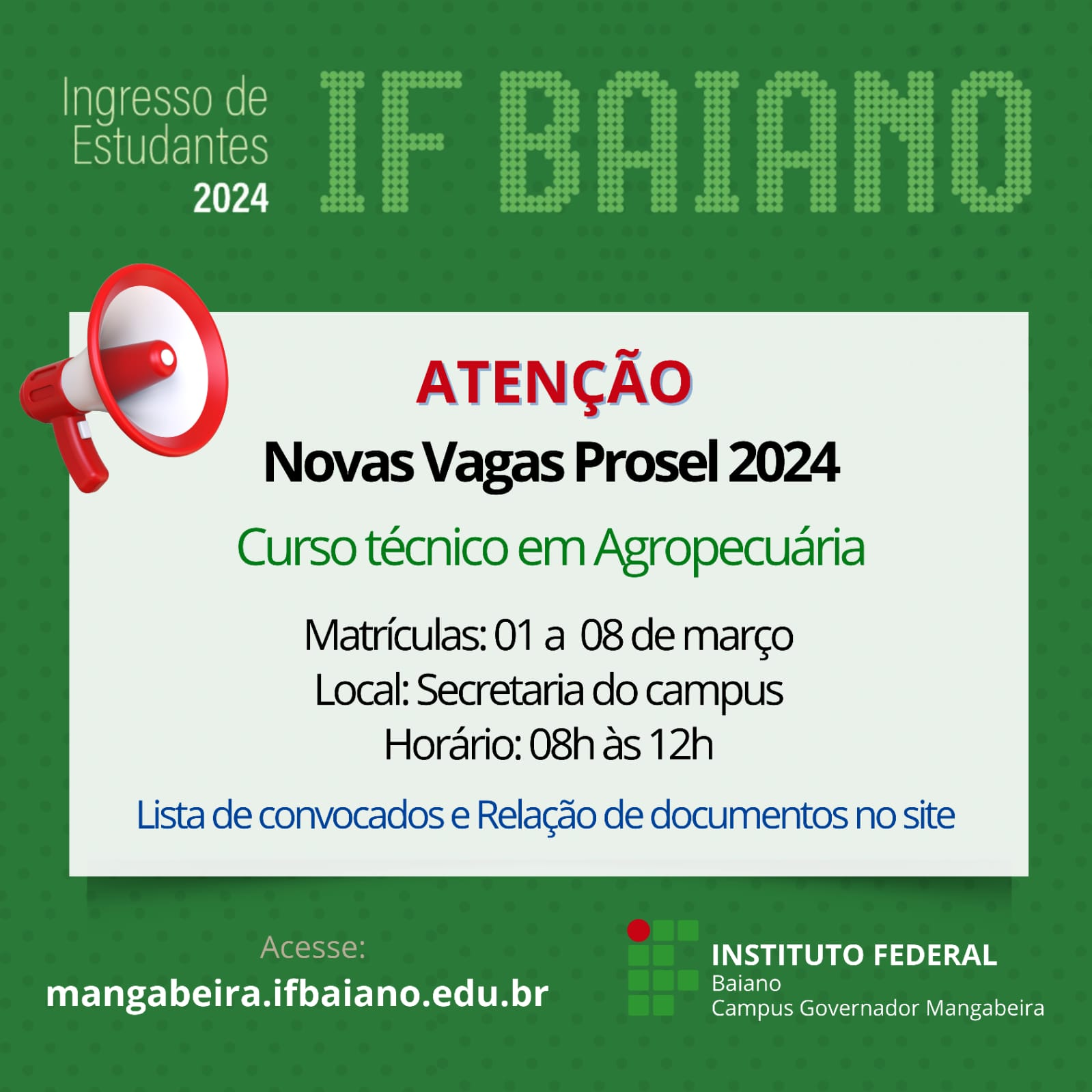 CONVOCAÇÃO PARA MATRÍCULA – Chamada lista de espera do curso Agropecuária