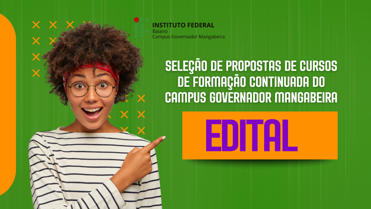 O Instituto Federal Baiano, campus Governador Mangabeira, torna público o Edital n.º 13/2024 para a seleção de propostas de Cursos de Formação Continuada (FIC), destinados à capacitação e ao aperfeiçoamento profissional. Servidores interessados poderão submeter projetos com o intuito de receber apoio financeiro de até R$ 2.500,00 por proposta aprovada, totalizando R$ 12.500,00 de recursos para esta chamada.