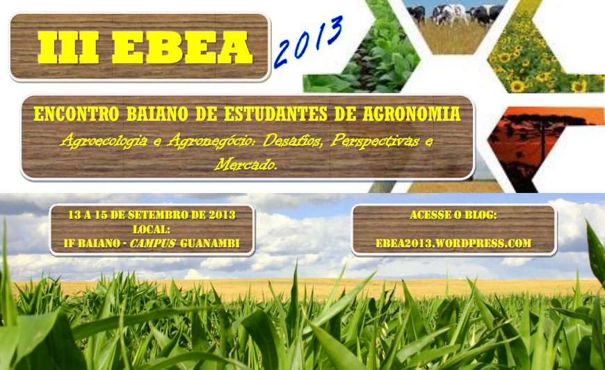 A Comissão Geral dos Discentes Organizadores do III EBEA juntamente com o Colegiado do Curso de Agronomia do IF Baiano Campus Guanambi promovem nos dias 13, 14 e 15 de Setembro de 2013 o III Encontro Baiano de Estudantes de Agronomia. Tendo como público alvo alunos do curso de Agronomia do campus e demais Instituições de Ensino Superior do Estado da Bahia.