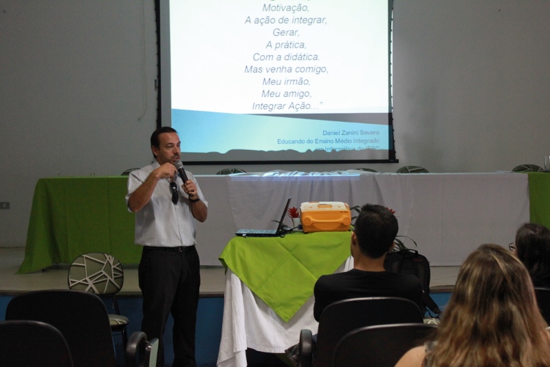 No fim do evento, o professor doutor Adriano Larentes palestrou sobre “O Currículo Integrado: desafios e possibilidades”, orientando oficinas que visavam ao planejamento de metodologias integradoras do conhecimento. Segundo a Técnica em Assuntos Educacionais, Dalcy Souza, uma das organizadoras da Jornada, a apresentação foi bastante oportuna para as propostas de currículo integrado. “As atividades em ações que oportunizam reflexões e ressignificações das práticas pedagógicas, além da interação dos atores educacionais do Campus, o que constitui um dos pressupostos para que a instituição atinja seu principal objetivo: a oferta de uma educação pública e de qualidade”, finalizou.