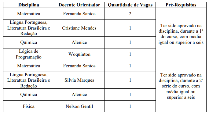 Instituto Federal de Educação, Ciência e Tecnologia Baiano – IF Baiano – Campus Guanambi, tornou público o presente Edital de Seleção de Monitores Bolsistas para os Cursos Técnicos Integrados ao Ensino Médio.