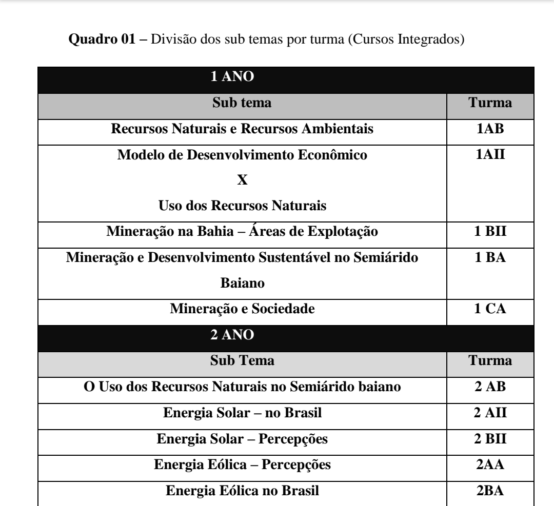 13h30 – Apresentação Cultural – 3º CA – tema: Racionalidade Ambiental sob o viés do IF Baiano – Campus Guanambi