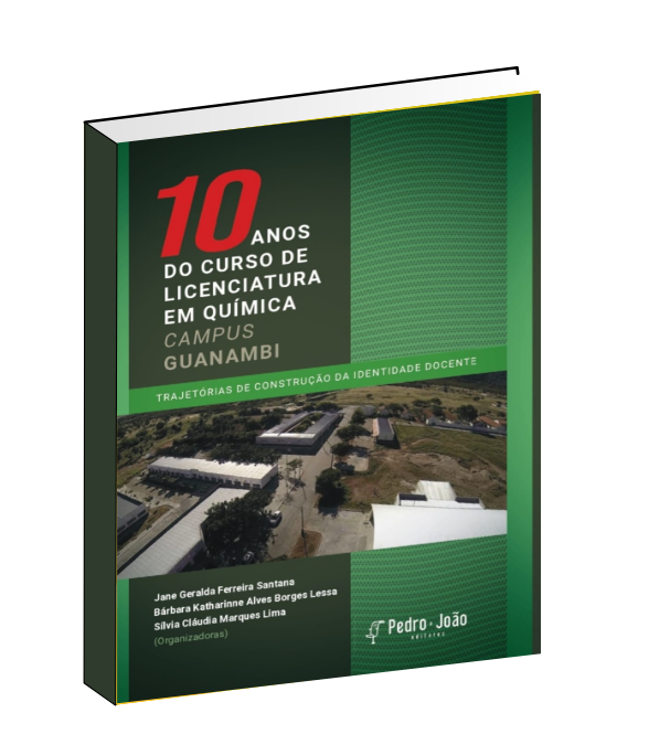 O segundo e-book que se intitula “10 Anos do Curso de Licenciatura em Química – Campus Guanambi”, foi organizado pelas professoras Bárbara Katharinne Lessa, Jane Geralda Santana e Sílvia Cláudia Marques Lima. Esta publicação aborda uma série de pesquisas científicas, com ênfase no percurso acadêmico nessa Licenciatura, vivenciado por docentes e graduandos(as). Também traz experiências de projetos e intervenções subsidiados pelo Programa Institucional de Bolsa de Iniciação à Docência (Pibid).