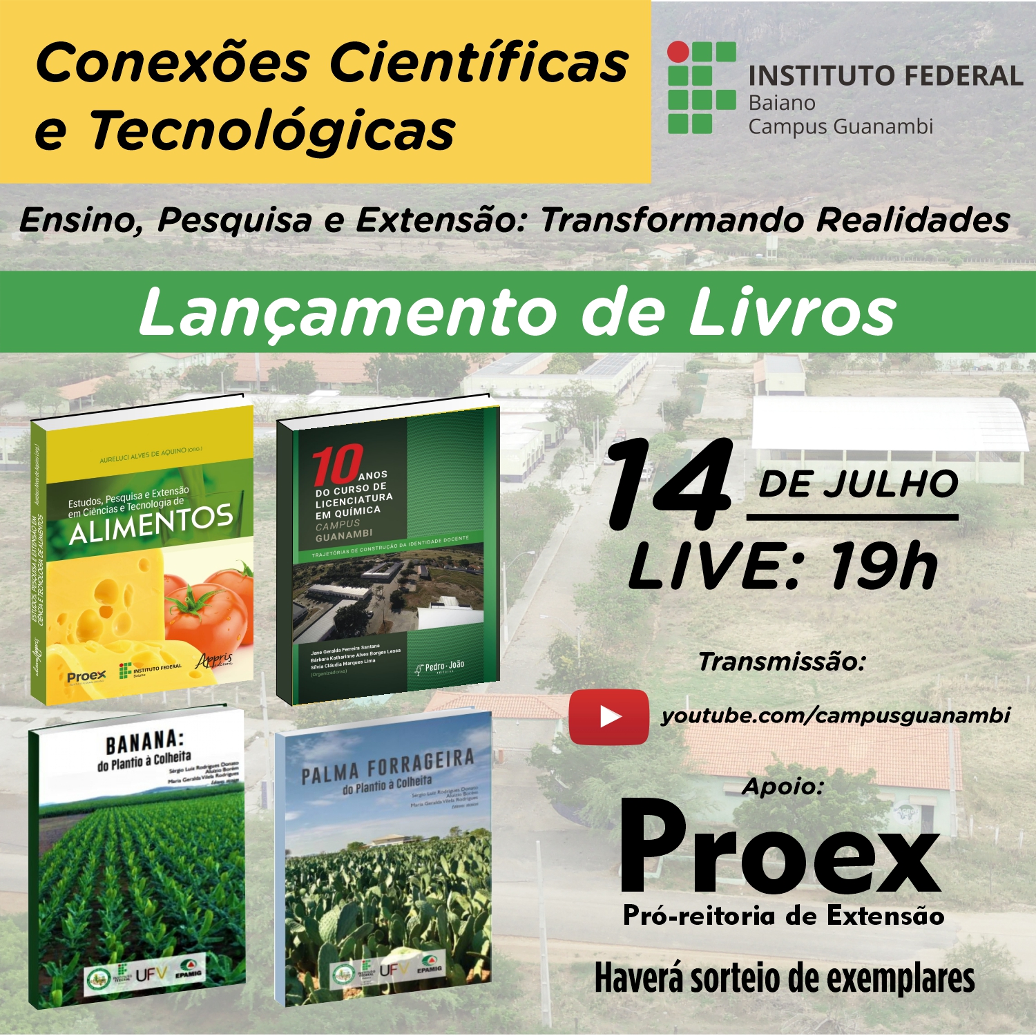 No dia 14 de julho, às 19h, o Instituto Federal Baiano – Campus Guanambi, por meio da Coordenação de Extensão, irá realizar uma live webinário para divulgar quatro livros – físicos e digitais – organizado por professores da instituição, com participação de estudantes e técnicos. A iniciativa visa fomentar o estímulo a publicações, com vistas à difusão do conhecimento cujas produções advêm de estudos correlacionados ao ensino, à pesquisa e à extensão.