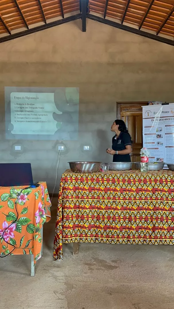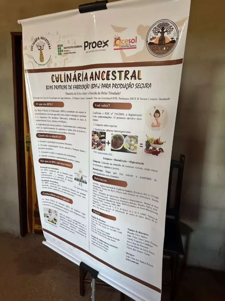 Segundo Daniela Aires, graduanda do curso de Tecnologia em Agroindústria e bolsista do Projeto Culinária Ancestral, “integrar um projeto de grande relevância voltado à culinária quilombola e colaborar na elaboração de uma cartilha sobre Boas Práticas de Fabricação foi uma experiência profundamente enriquecedora para minha formação acadêmica e profissional. Transmitir às comunidades quilombolas orientações sobre Boas Práticas de Fabricação foi uma vivência valiosa, que contribuiu para fortalecer o conhecimento sobre a correta manipulação dos alimentos.”