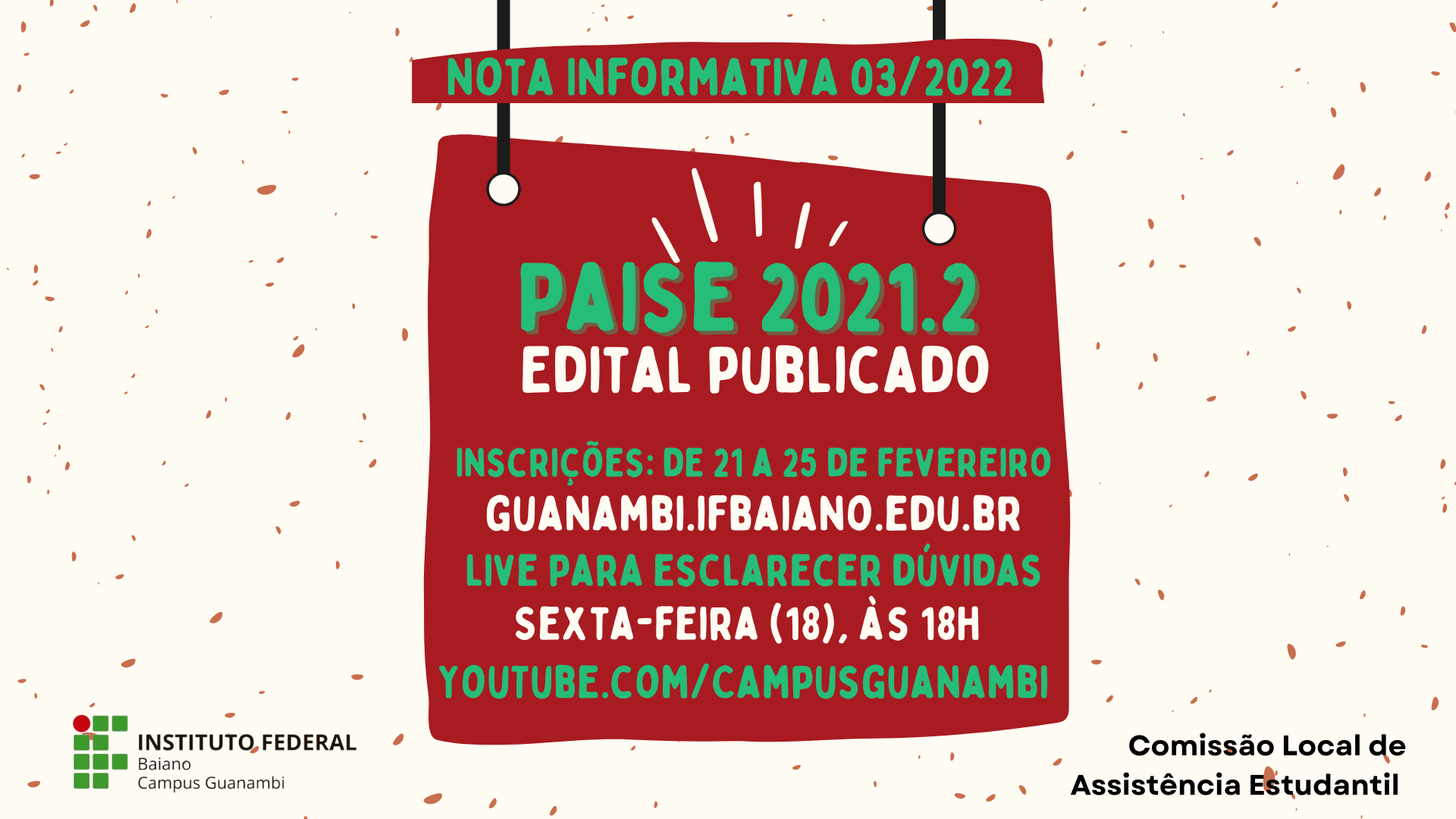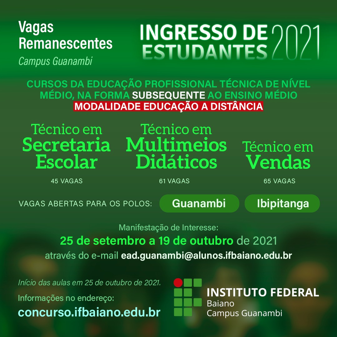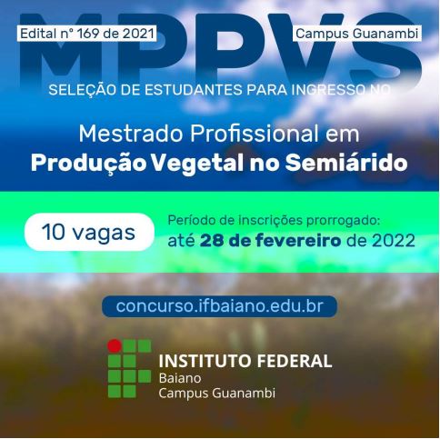 O Instituto Federal de Educação torna pública a abertura de inscrições do Processo Seletivo para Ingresso de Estudantes em 2016, nos cursos da educação profissional técnica de nível médio, nas formas de ofertaINTEGRADA e SUBSEQUENTE, para os campi Bom Jesus da Lapa, Catu, Governador Mangabeira, Guanambi, Itapetinga, Santa Inês, Senhor do Bonfim, Serrinha, Teixeira de Freitas, Uruçuca e Valença. E […]