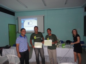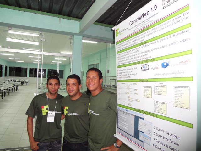 Durante os dias do evento, alunos concluintes do curso Técnico em Informática do IF Baiano Campus Itapetinga apresentaram pôsteres de seus projetos de estágio. O projeto “IF Biblio: Sistema Desktop para Gestão de Informação de Biblioteca”, dos discentes Hirlei Oliveira Moreira e Ivanderson Oliveira Moreira, teve orientação do professor Pablo Matos. Sob a orientação do professor Djan Almeida Santos, os estudantes Bruno Silva de Oliveira e Eder Soares apresentaram o trabalho “Control Web 1.0”, que é um sistema de informação via web que controla estoque de materiais. Segundo Bruno Oliveira, a função do programa é “armazenamento de informações de serviços, produtos, operadores e relatórios de uma empresa”. O projeto executado nas instalações da UESB – Campus Itapetinga, onde o estudante realiza o estágio, é a oportunidade de mostrar as competências adquiridas no curso. “Coloquei em prática as atividades realizadas em sala de aula com os professores orientadores”, ressalta Bruno.