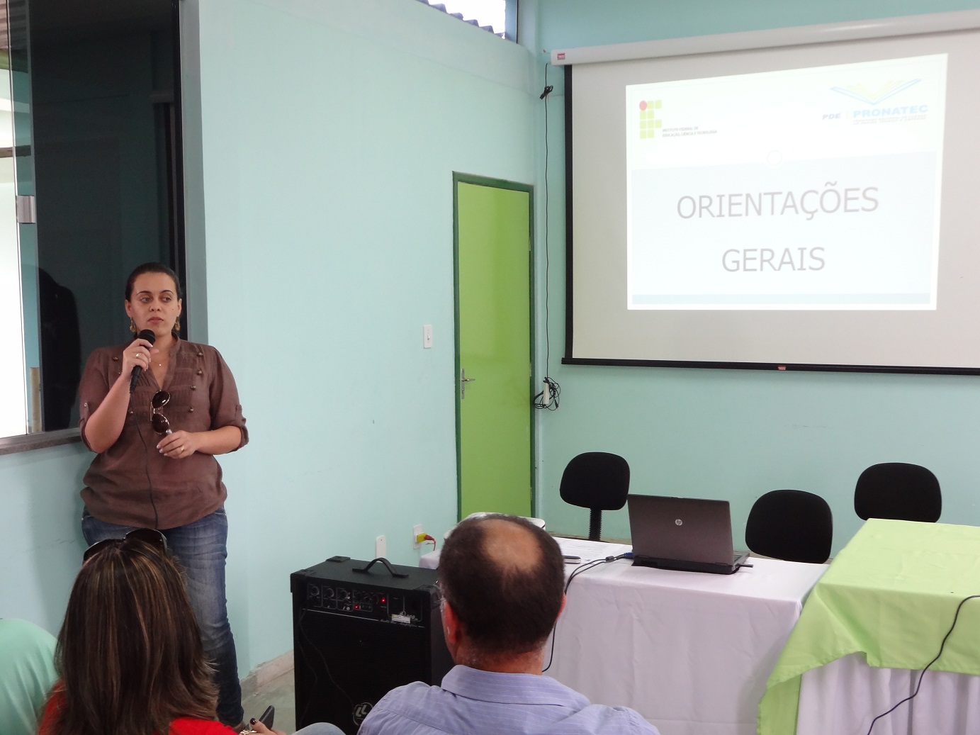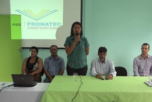 Ainda na solenidade, a professora Alexandra Pereira Santos, coordenadora local do PRONATEC explicou a função do Programa em colocar em prática uma das missões dos IFs que é promover a melhoria das condições locais e regionais. Esclarece aos alunos o aumento das possibilidades de emprego com a formação nos cursos oferecidos. “Vocês terão a oportunidade de ter um curso de qualificação profissional, que vai aumentar a mão-de-obra capacitada na região…”, termina.