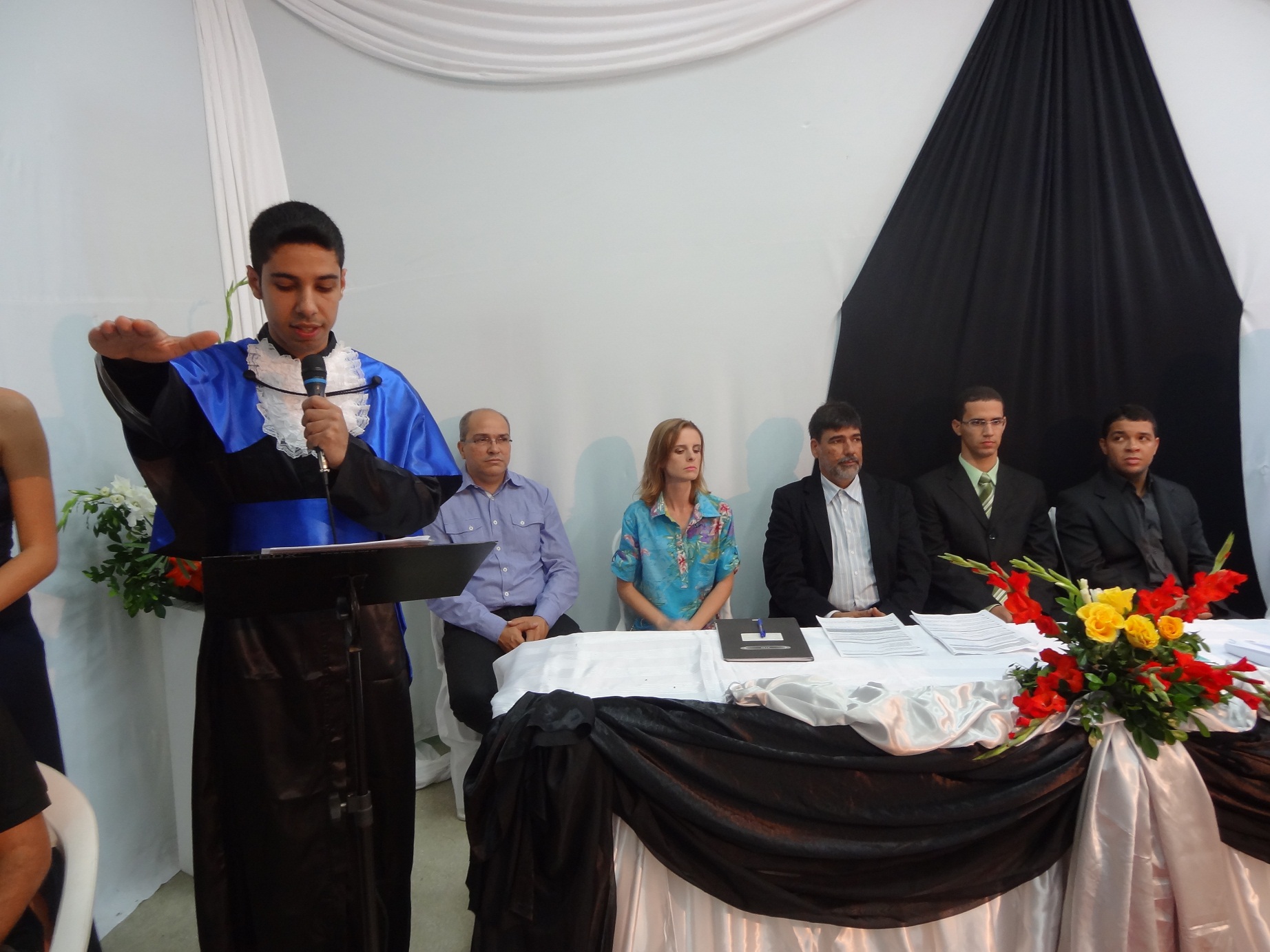 Após a escuta do Hino Nacional e da abertura da solenidade pelo diretor – geral José Assunção, o aluno Caio Eduardo de Carvalho proferiu o juramento do profissional Técnico em Informática. Em seguida, houve a concessão de grau, com a entrega dos diplomas aos concluintes da turma Semente: Caio Eduardo de Carvalho, Bruno Silva de Oliveira, Fábio Carvalho Cavalcante, Joabes Ribeiro Silva, Marielson de Oliveira Silva e Murilo Porto Rocha.