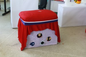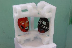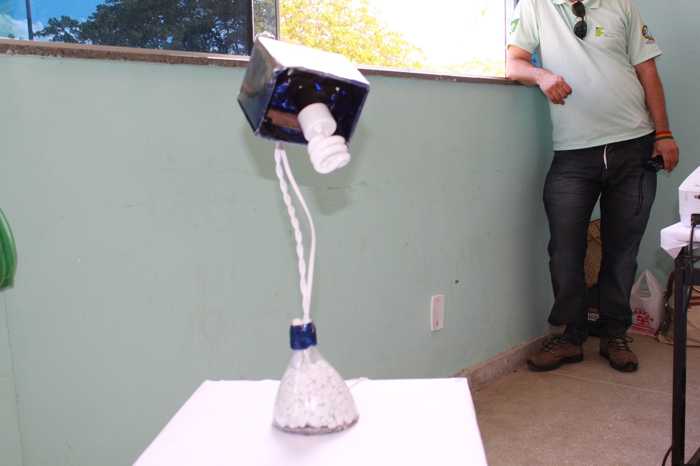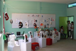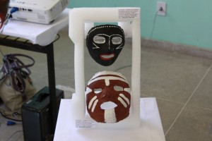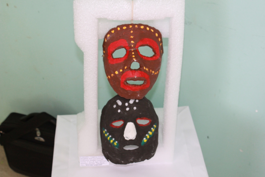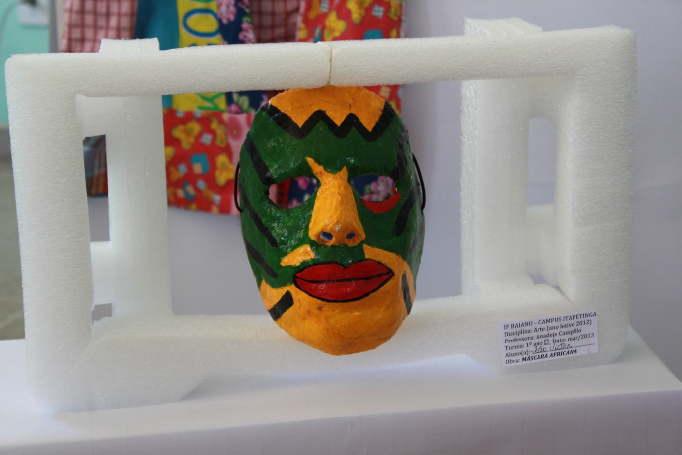 No auditório do campus, foram expostos trabalhados desenvolvidos pelos alunos da 1ª série do curso Técnico em Agropecuária Integrado, como máscaras africanas e objetos de artes feitos com material reciclado.