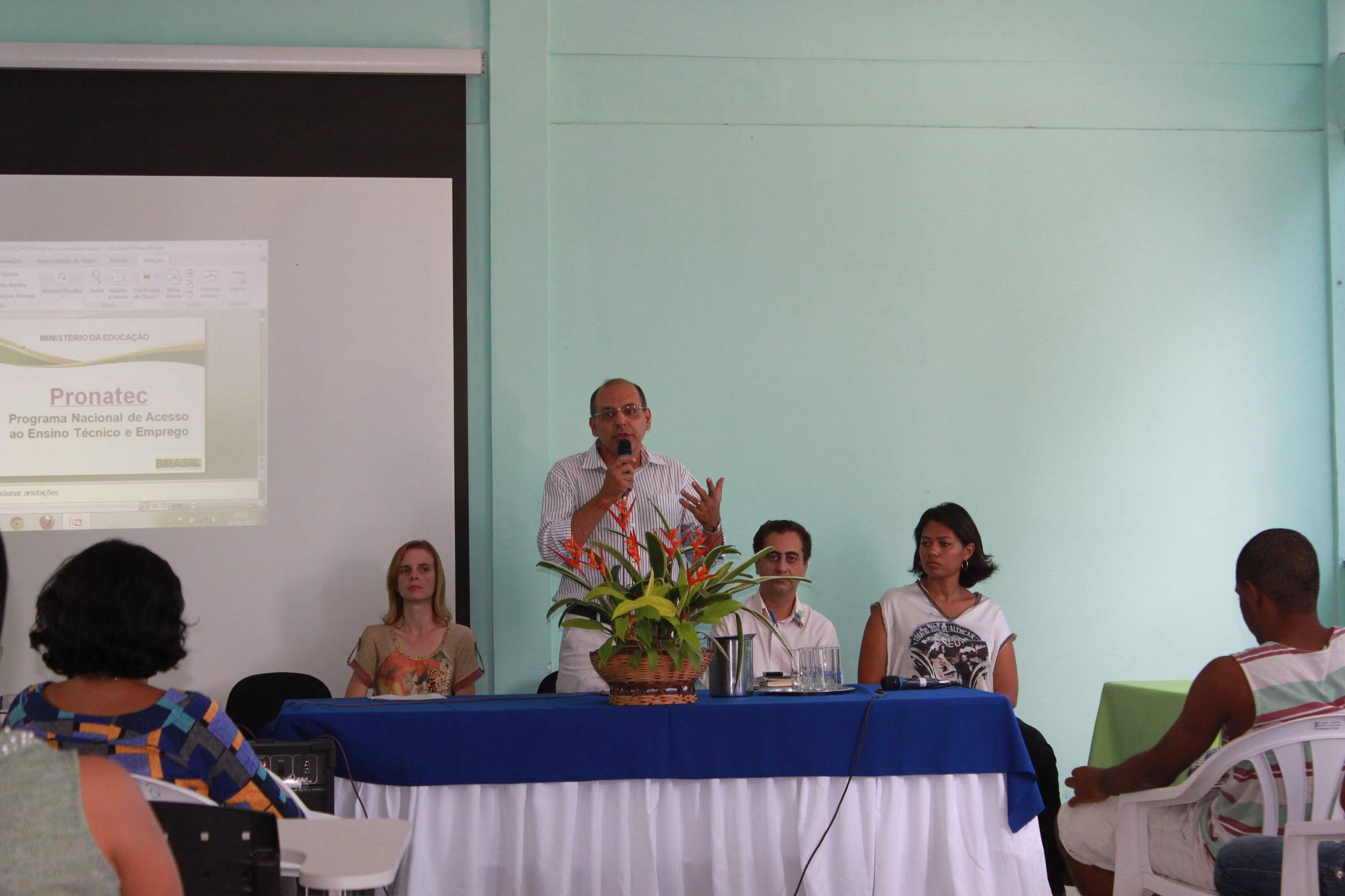 Além do professor José Dionísio Borges de Macêdo, diretor-geral do Campus Itapetinga, fizeram parte da mesa o vice-diretor do Colégio Modelo Luís Eduardo Magalhães, professor Edson Vieira Silva; a coordenadora geral de Ensino, professora Rosana Moura de Oliveira e a coordenadora local do Pronatec, professora Alexandra Pereira dos Santos.