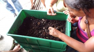 A oficina trabalhou a criação de minhocas em sistemas de caixas sobrepostas.