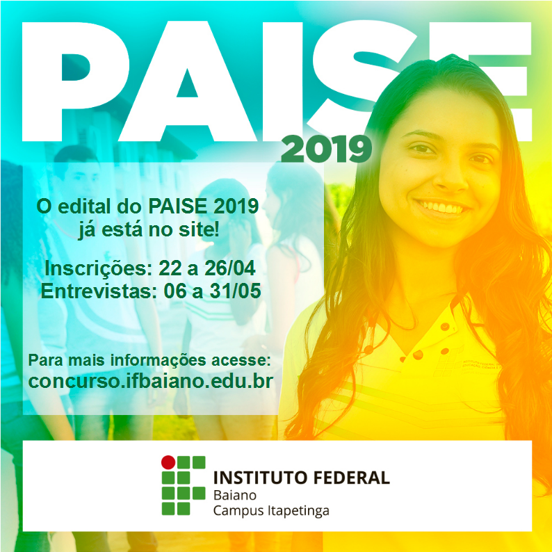 Saiu o Edital do PAISE 2019 do campus Itapetinga do IF Baiano