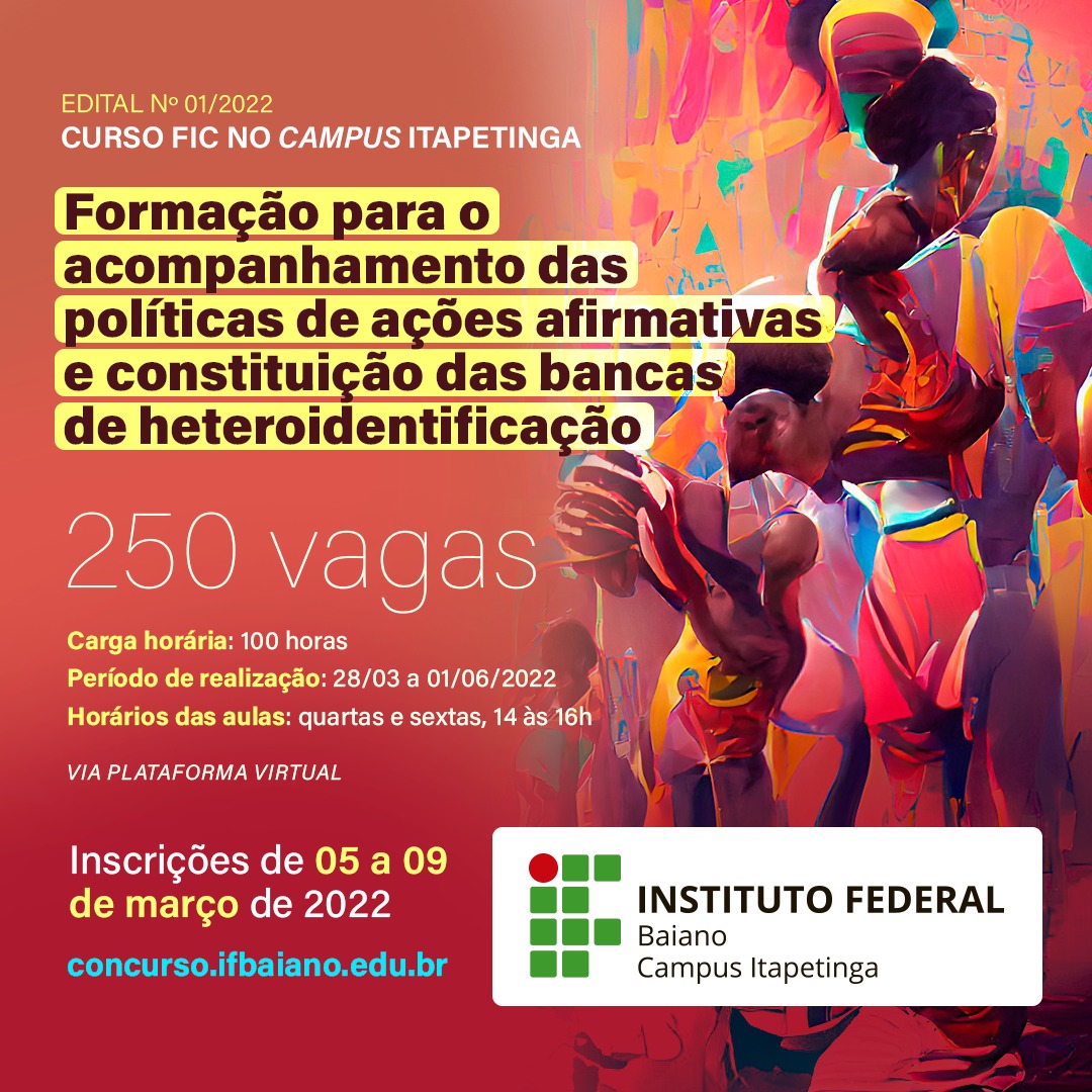 Curso: Formação para o acompanhamento das políticas de ações afirmativas e constituição das bancas de heteroidentificação – carga horária 100h – 250 vagas.