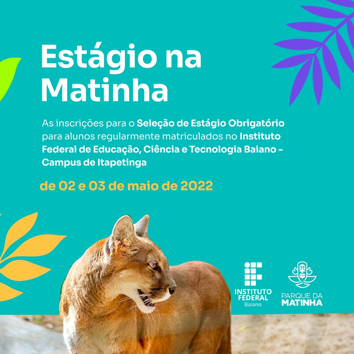 IF Baiano campus Itapetinga junto com o Parque da Matinha abrem vagas para estágio supervisionado para os cursos técnicos integrados de meio ambiente e agropecuária.