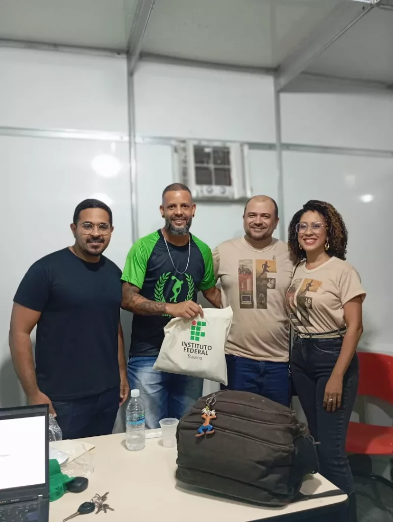 Paralelamente, o Auditório do Parque Jovino Oliveira sediou uma atividade especial, reforçando o compromisso do IF Baiano, campus Itapetinga, com a difusão de conhecimento em diferentes espaços do evento. Naquele espaço, foi realizada a palestra “Manipulação das variáveis do treinamento resistido para ganhos de força e hipertrofia muscular“, proferida pelo professor Talisson Santos Chaves (docente do curso de graduação em Educação Física).