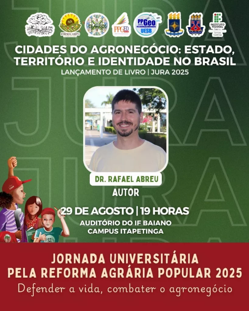 Além da mesa-redonda, o público também poderá prestigiar o lançamento do livro “Cidades do Agronegócio: Estado, Território e Identidade no Brasil”, de autoria do professor Rafael Abreu.