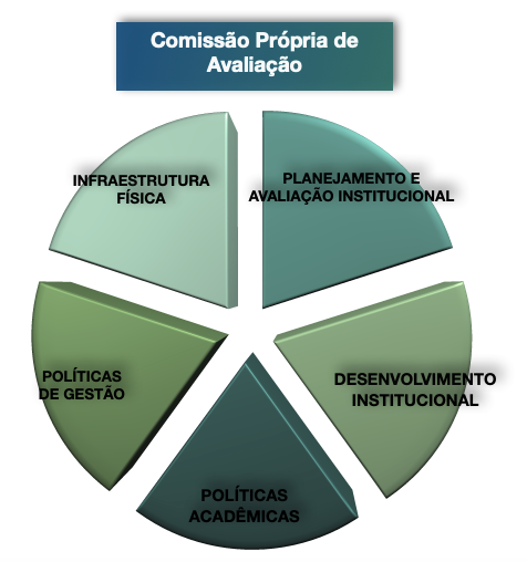 A comissão avalia aspectos estruturados em cinco eixos e dez dimensões direcionadas à comunidade acadêmica e à comunidade local.