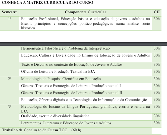 Formar profissionais para atuar com eficiência na docência em cursos de Educação de Jovens e Adultos – EJA, mediante postura crítico-reflexiva voltada para leitura e produção de textos, que permita atender as especificidades dessa modalidade de ensino, considerando as peculiaridades, as circunstâncias particulares e as situações contextuais concretas, a fim de potencializar todos os recursos disponíveis para a promoção da aprendizagem dos alunos da EJA.