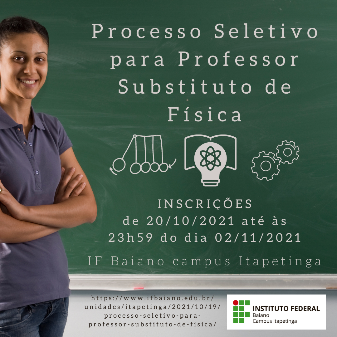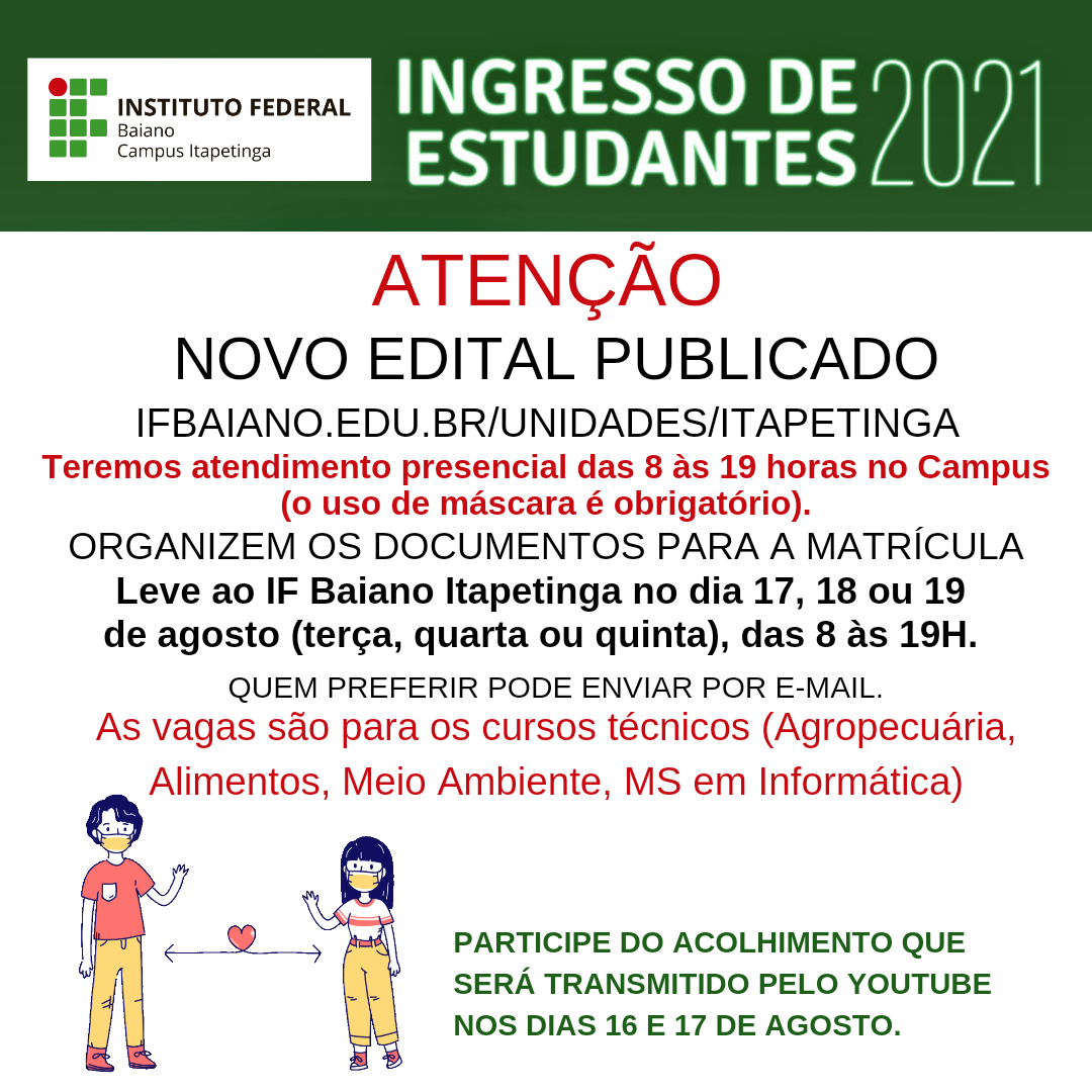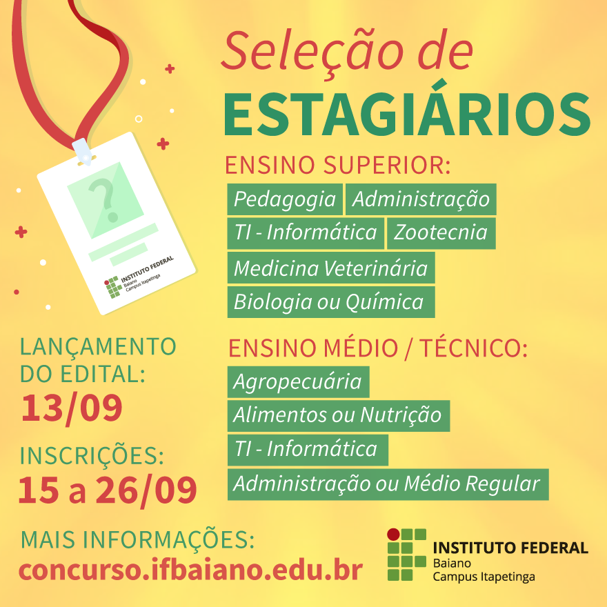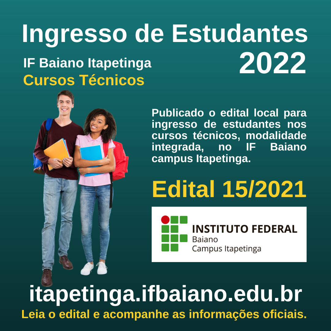 O DIRETOR-GERAL DO INSTITUTO FEDERAL DE EDUCAÇÃO, CIÊNCIA E TECNOLOGIA BAIANO – IF BAIANO – CAMPUS ITAPETINGA, nomeado pela Portaria nº 280 de 18/03/2022, publicado no DOU de 21/03/2022, Seção 2, página 26 , e de acordo com as disposições contidas na Lei nº 11.892, de 29/12/2008, e na Lei nº 8.112, de 11/12/1990, torna […]
