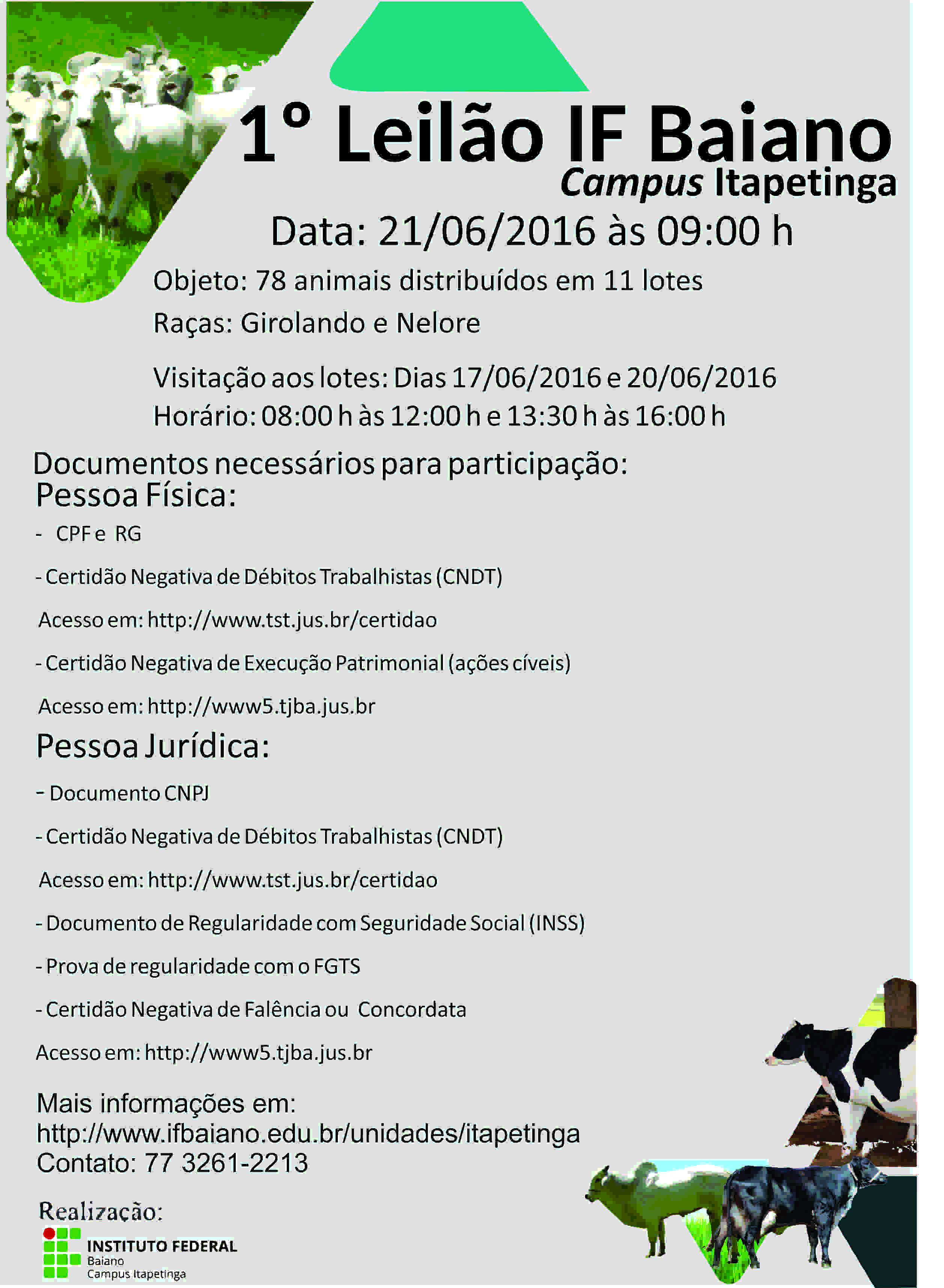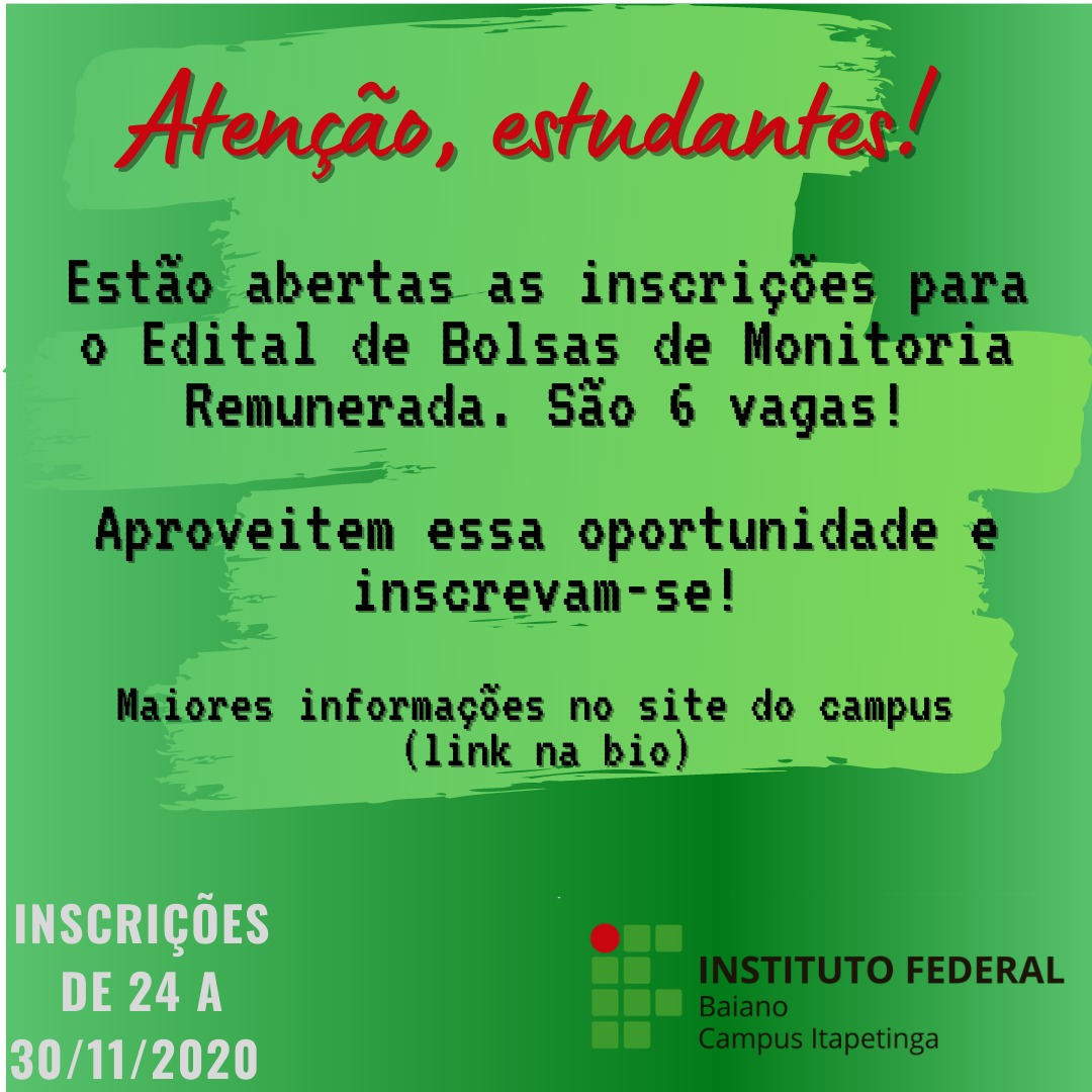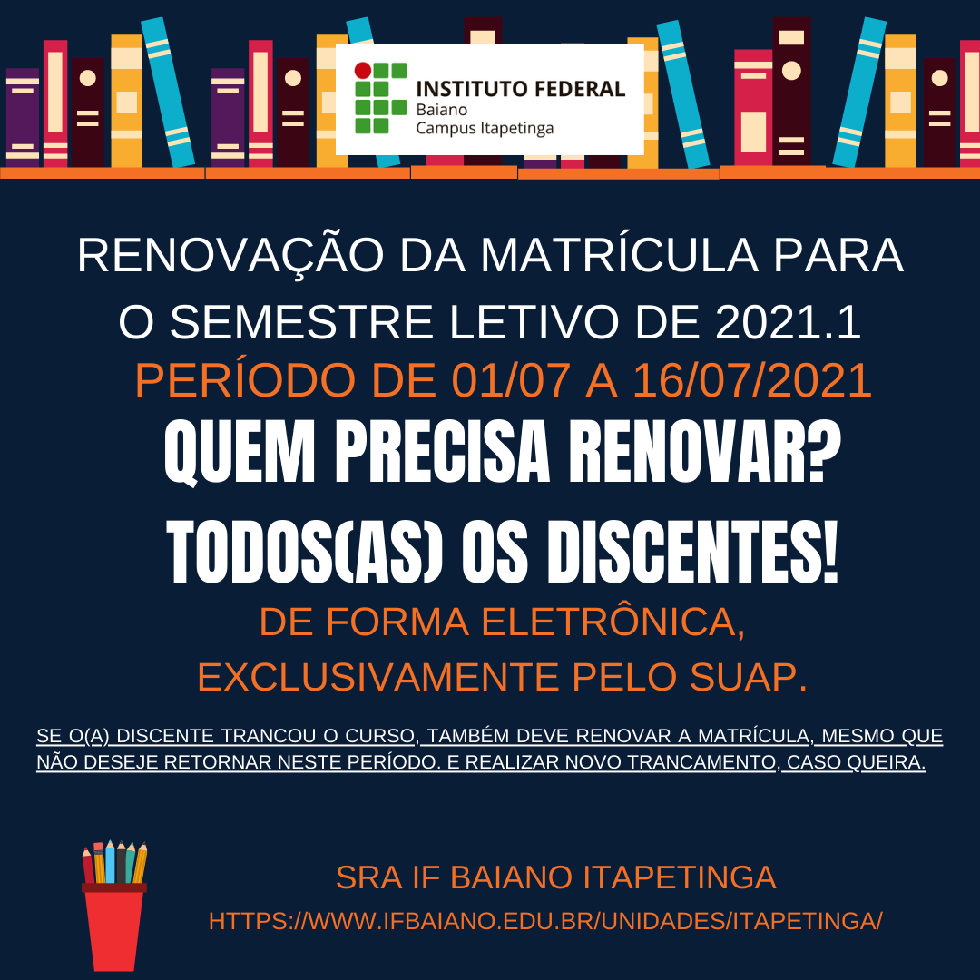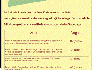 O DIRETOR-GERAL DO INSTITUTO FEDERAL DE EDUCAÇÃO, CIÊNCIA E TECNOLOGIA BAIANO – IF BAIANO – CAMPUS ITAPETINGA, nomeado pela Portaria nº 280 de 18/03/2022, publicado no DOU de 21/03/2022, Seção 2, página 26 , e de acordo com as disposições contidas na Lei nº 11.892, de 29/12/2008, e na Lei nº 8.112, de 11/12/1990, torna […]