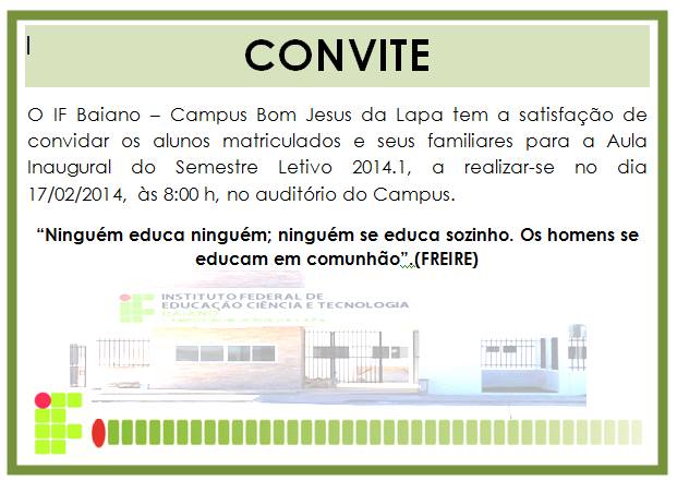 Aula Inaugural 2014.1 – IF Baiano – Campus Lapa