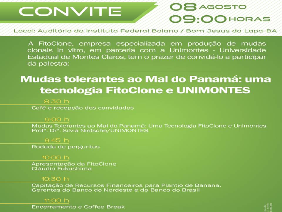 MUDAS TOLERANTES AO MAL DO PANAMÁ: UMA TECNOLOGIA FITOCLONE E UNIMONTES