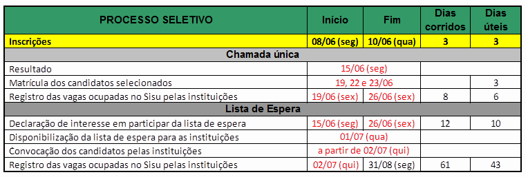 ACESSEM O CRONOGRAMA DE SELEÇÃO DO SISU
