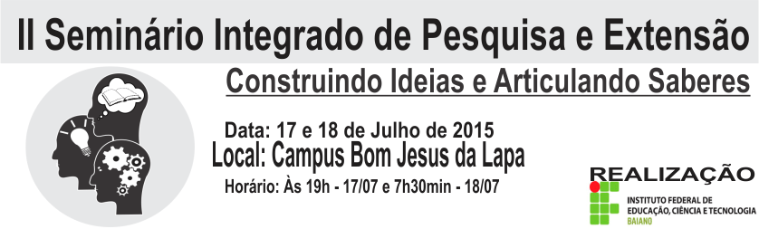 O Campus Bom Jesus da Lapa realizará, nos dias 17 e 18 de julho de 2015, o II Seminário Integrado de Pesquisa e Extensão.