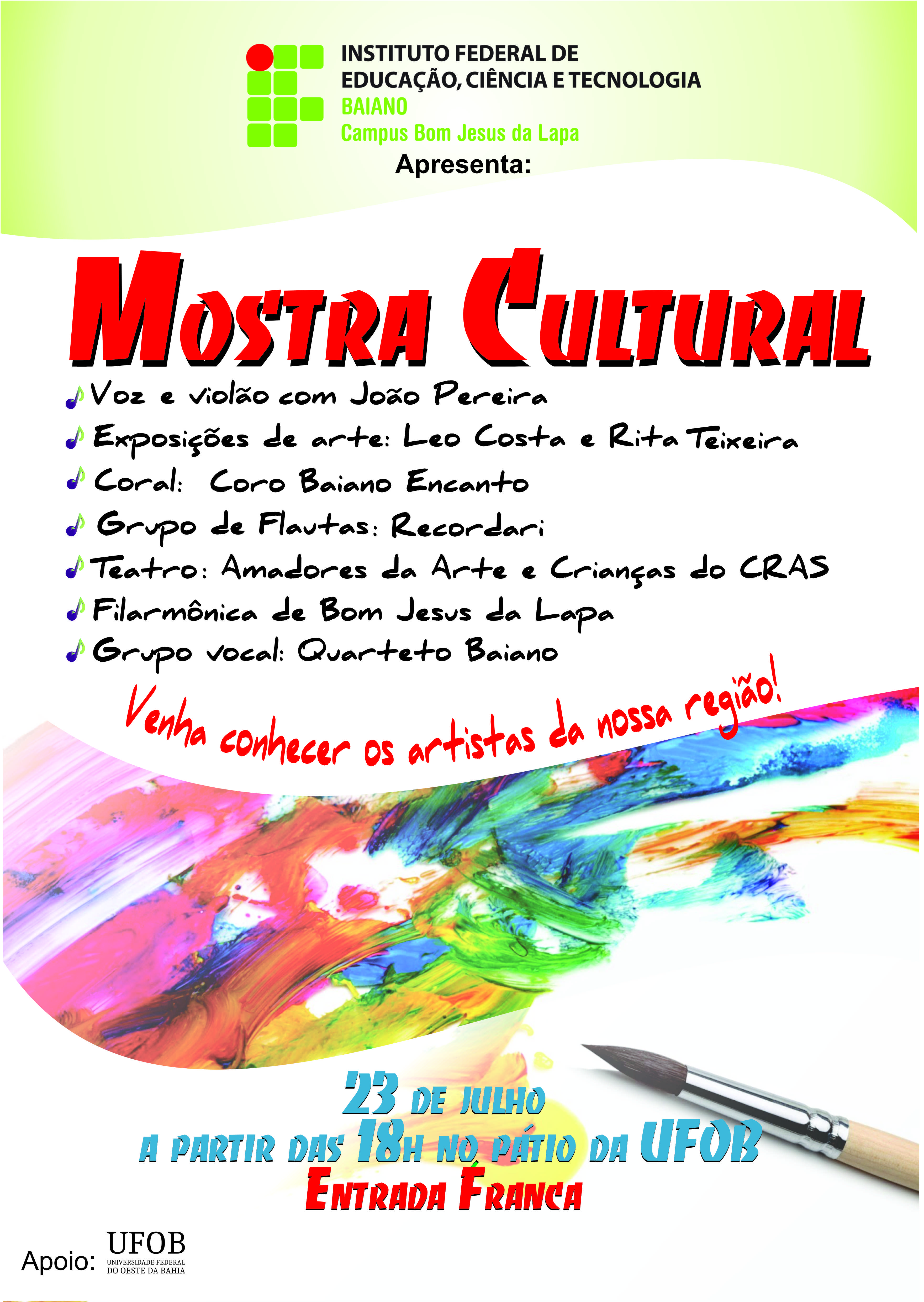 Com o objetivo de fortalecer e valorizar a cultura local/regional, o IF Baiano – Campus Bom Jesus da Lapa, por meio da Comissão Organizadora, promove a II Mostra Cultural do Campus.