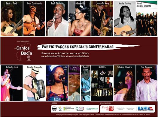 Aprovado pelo Edital Agitação Cultural – Dinamização em Espaços Culturais da SECULT/BA, tendo como proponente o artista Cléber Eduão, O Projeto Encantos da Bacia se propõe a realizar uma síntese cultural da Bacia do Rio São Francisco, congregando artistas e comunidade em um espaço de fortalecimento e valorização da cultura musical.