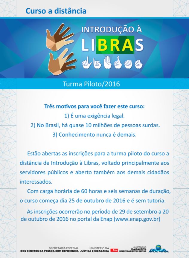 Servidores e estudantes poderão realizar curso de Introdução à Libras na modalidade EAD, através da ENAP.