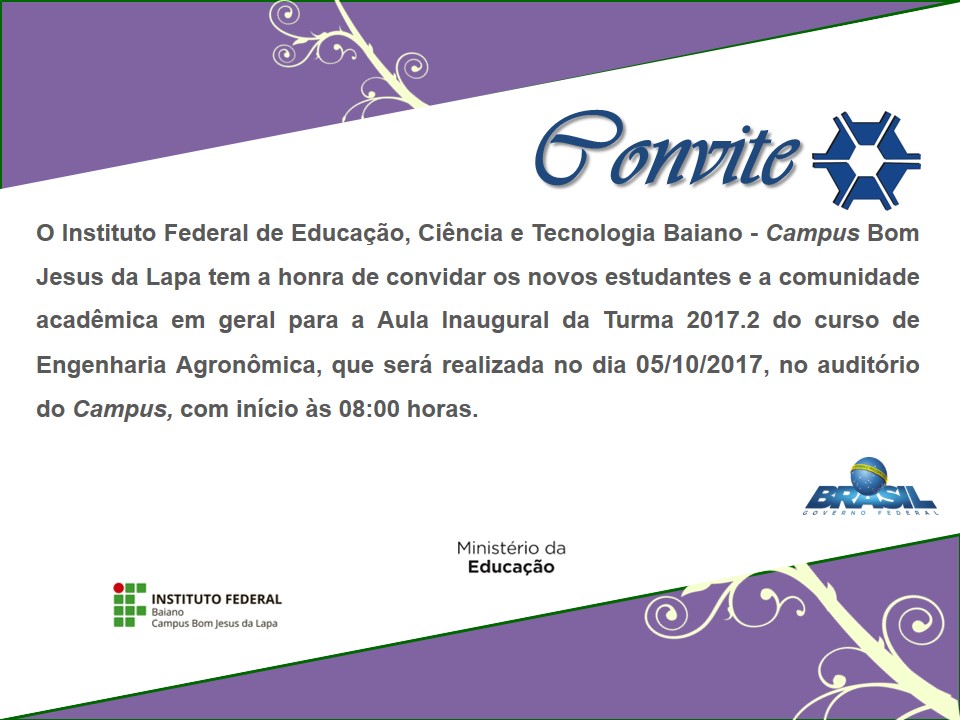 CONVITE – Aula Inaugural 2017.2 – Engenharia Agronômica