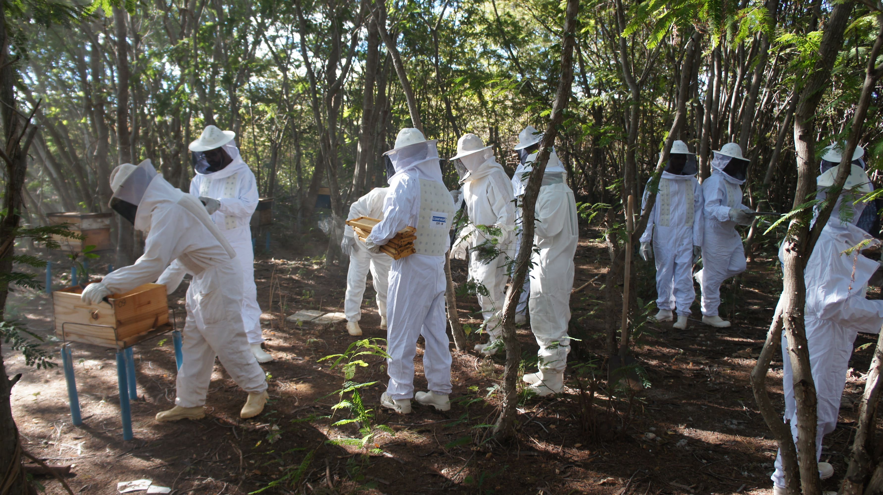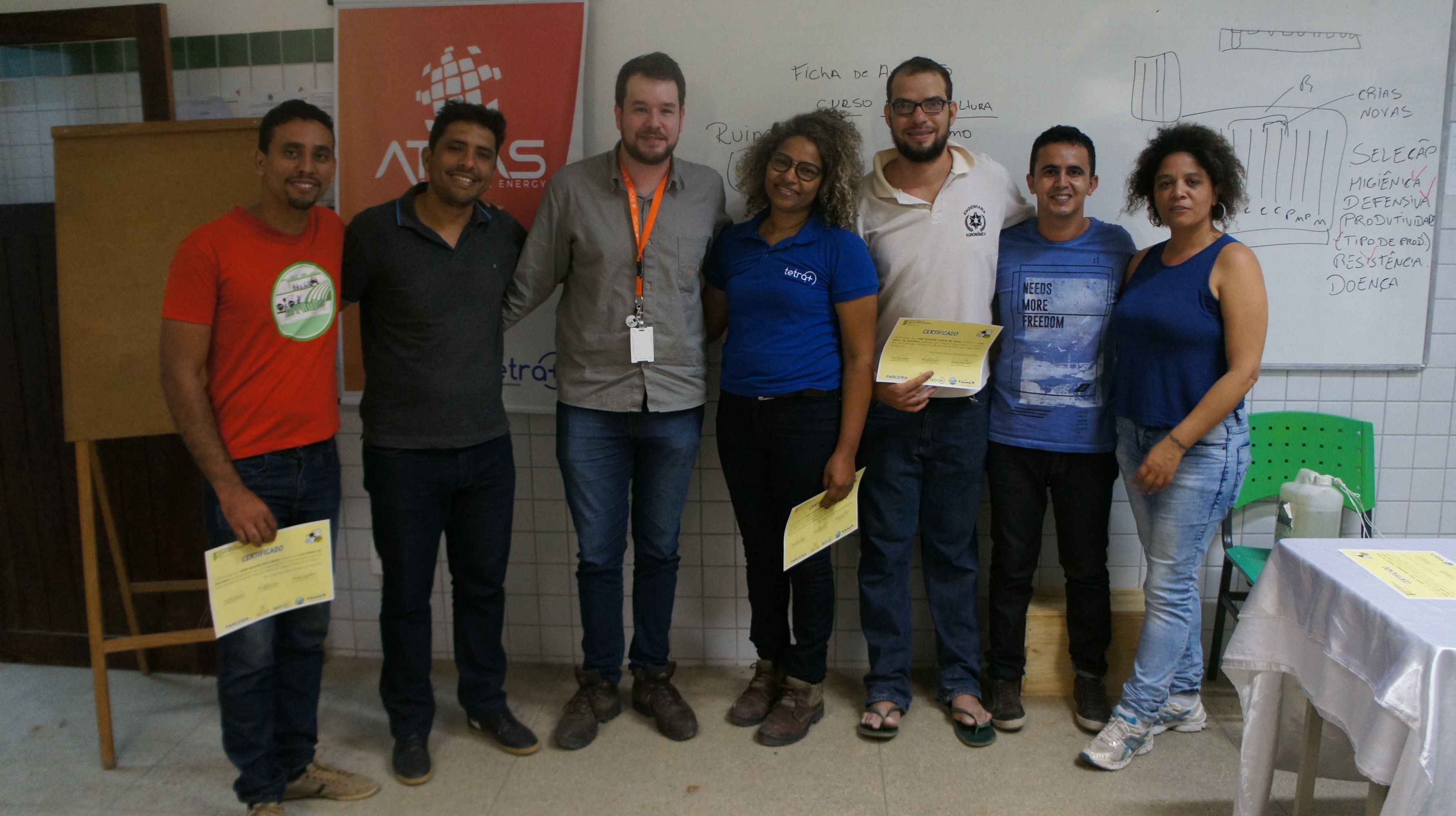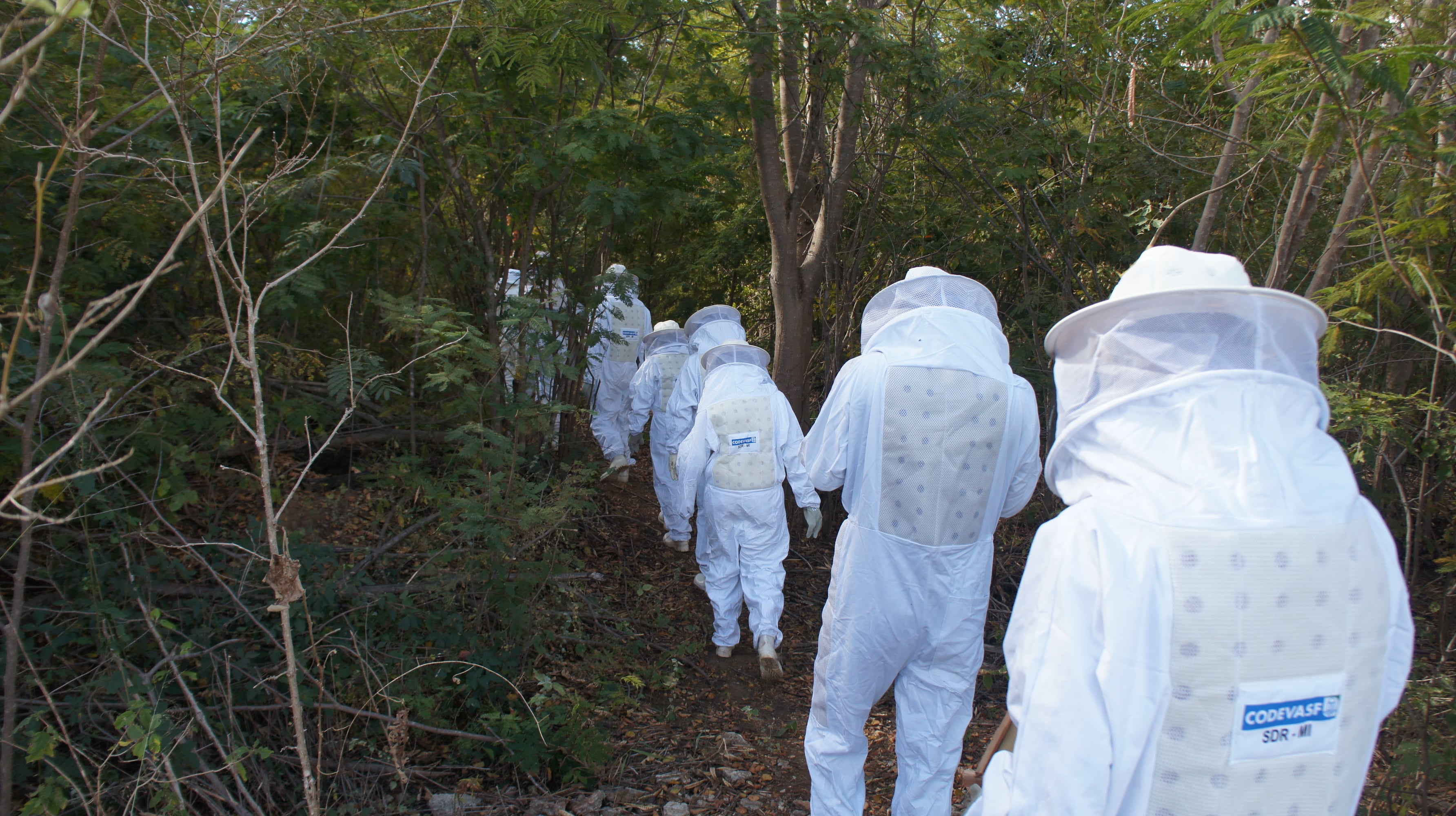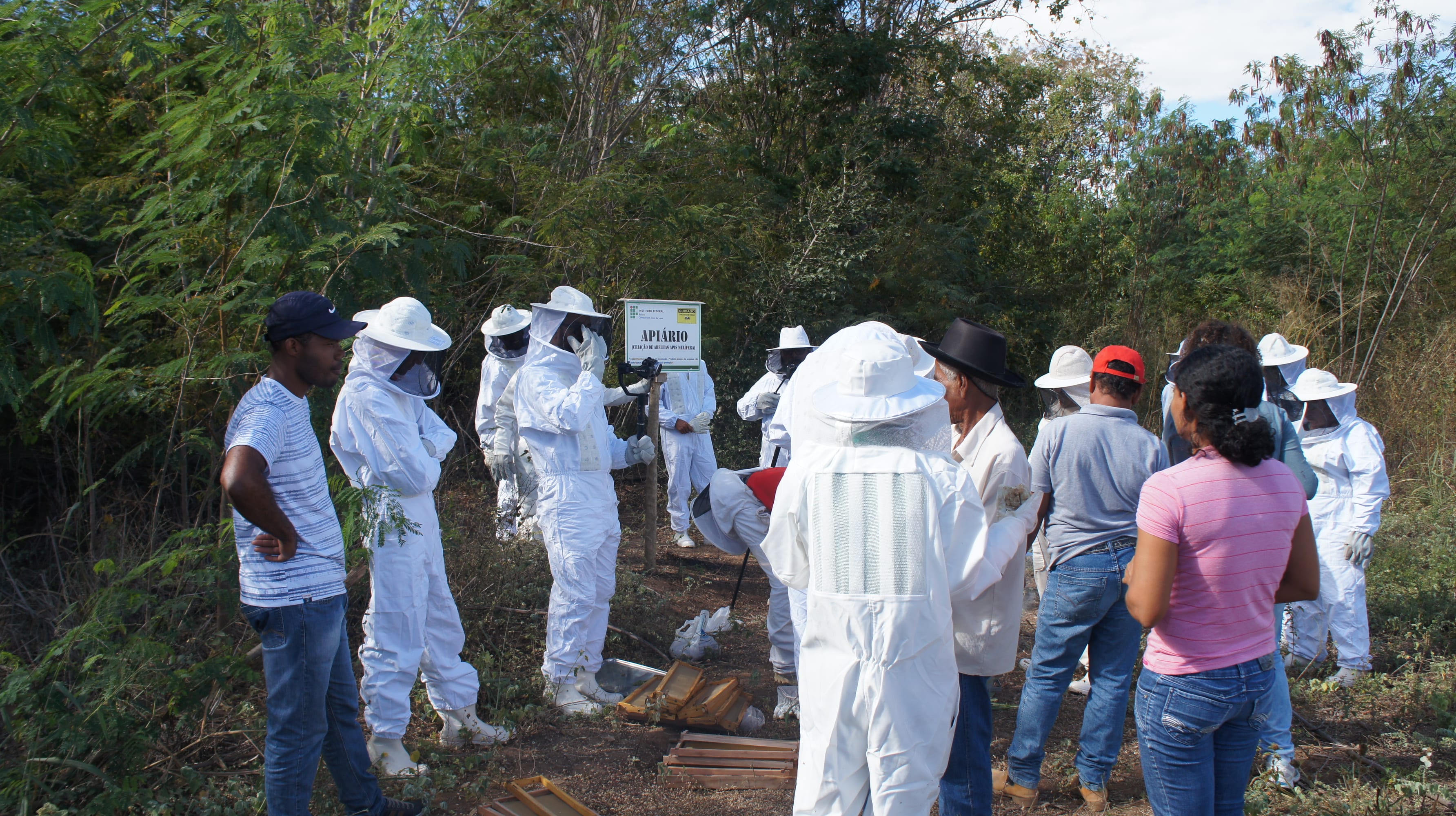 Nos dias 27 e 28 de junho, o Campus Bom Jesus da Lapa promoveu o curso de nível básico em Apicultura, para 23 moradores das comunidades Rurais Quincas, Mundo Novo, Roça de Dentro, Lapinha e Mutuca, localizadas no município de Bom Jesus da Lapa. Fruto de uma parceria entre o IF Baiano e as Empresas Atlas e Tetra, responsáveis pela implantação dos Parques Fotovoltaicos São Pedro II e São Pedro IV, o curso foi ministrado pelos estudantes de Agronomia, Felipe Nonato e José Augusto de Souza. Os referidos estudantes participam do Laboratório de Políticas Públicas, Ruralidades e Desenvolvimento Territorial (LaPPRuDes) e atualmente compõem a equipe executora dos projetos de pesquisa na área de apicultura, desenvolvidos pelo Campus com o apoio da Pró-Reitoria de Pesquisa do IF Baiano e Codevasf.