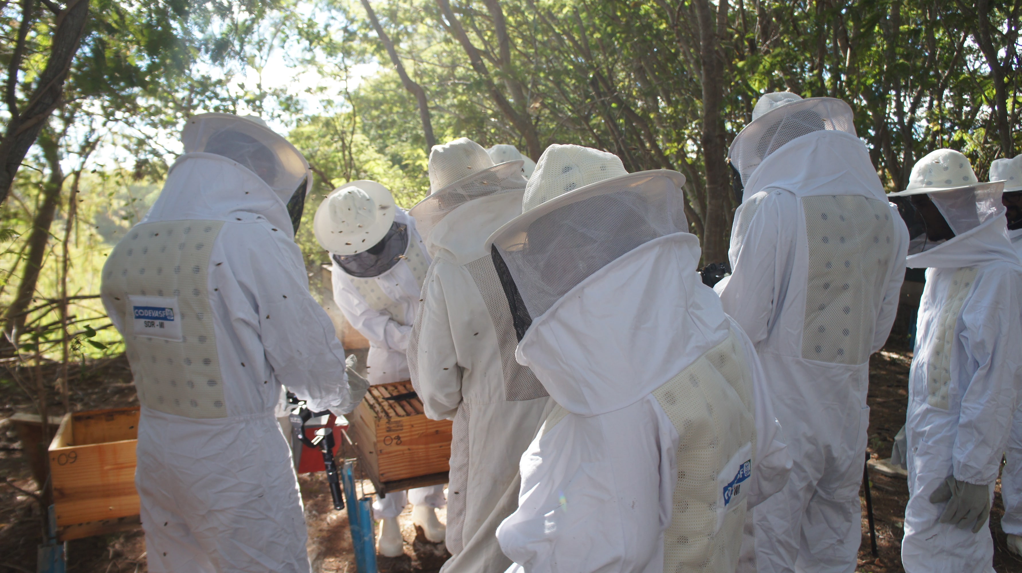 Com uma carga horária de 16 horas, o curso foi organizado em oficina teórica e prática. Os momentos práticos foram desenvolvidos no Apiário experimental, localizados no próprio Campus. Além disso, os participantes tiveram a oportunidade de conhecer também o meliponário.