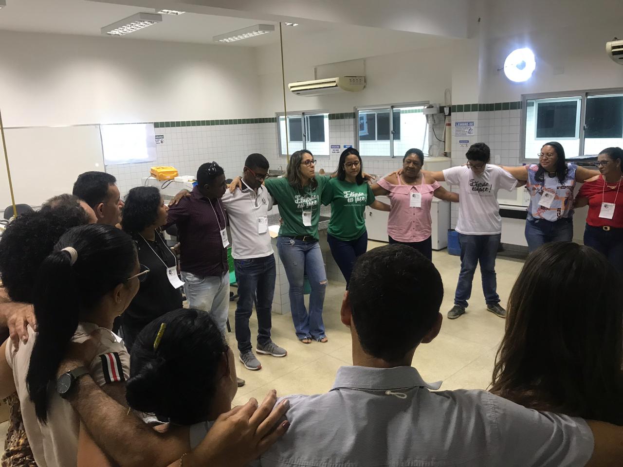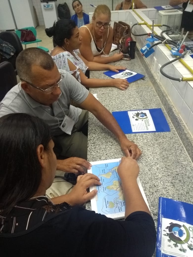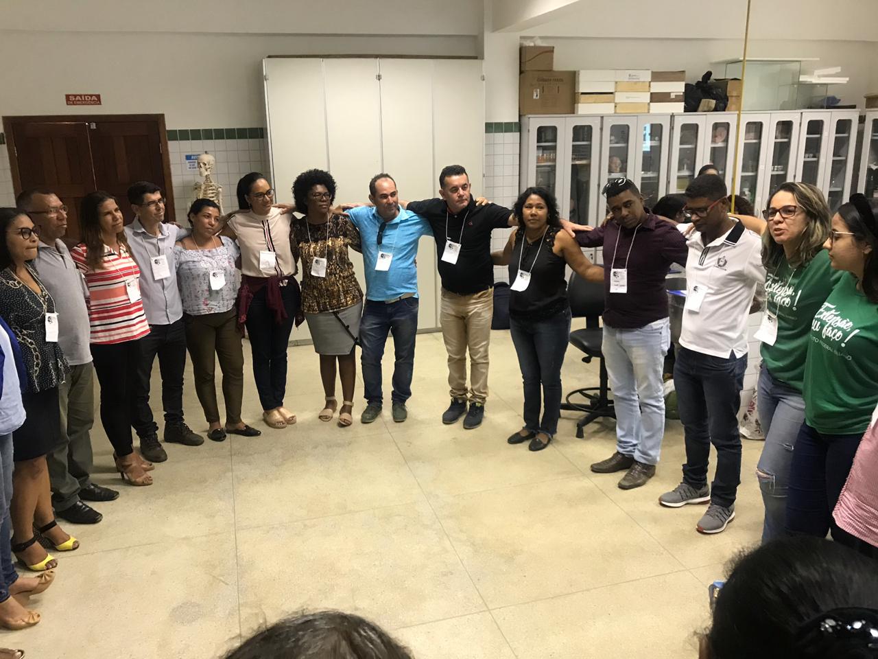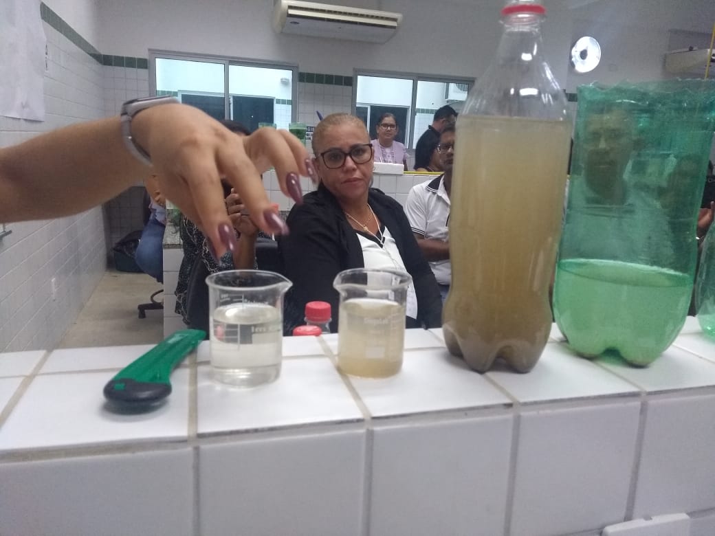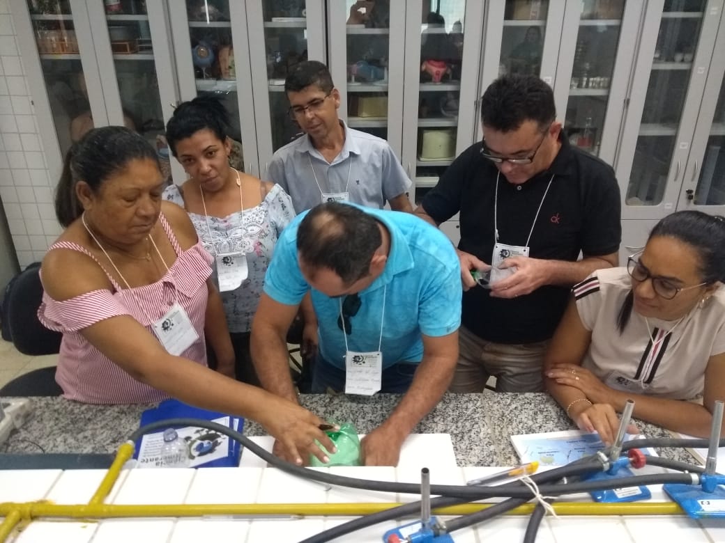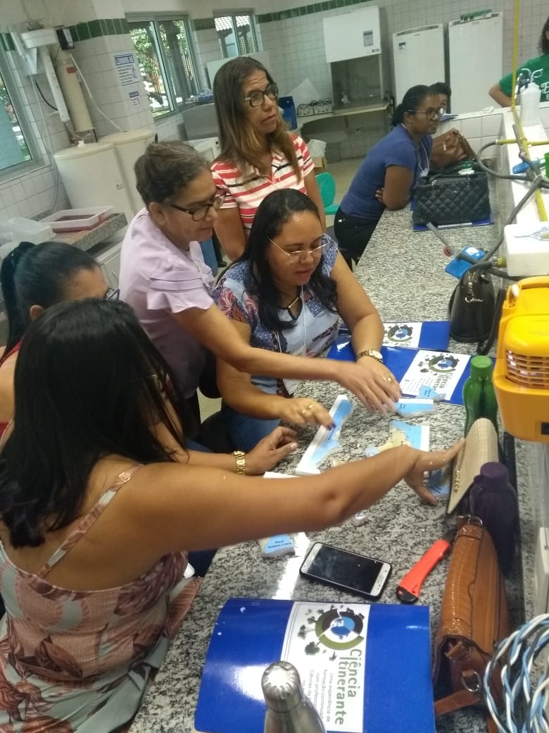 O IF Baiano campus Bom Jesus da Lapa recebeu, no último dia 24 de julho, 28 professores do município de Serra do Ramalho para a primeira oficina do projeto de extensão Ciência Itinerante: uma experiência de formação continuada com professores de ciências naturais do município de Serra do Ramalho – Bahia. O encontro ocorreu durante todo o dia e contou com três momentos de formação nos quais os participantes desenvolveram atividades práticas voltadas ao ensino de ciências para estudantes do ensino fundamental, séries finais. Pela manhã, a professora Francine Katariny abordou o tema poluição da água e produziu com os participantes um modelo de estação de tratamento de água. Em seguida, a professora Juliana Carvalhais trabalhou a temática “lixo: um problema sócio-ambiental”, discutindo a produção de lixo nos espaços escolares e possíveis soluções para a redução, reaproveitamento e condução adequada dos resíduos sólidos para reciclagem. À tarde, a professora Maria Aparecida fez duas oficinas sobre “Dinâmica da Terra”. Em uma delas, os professores produziram um modelo de placas tectônicas e na outra um vulcão. Ao final do dia, os participantes compartilharam suas impressões sobre os trabalhos desenvolvidos e expectativas para a próxima formação que já foi agendada para o dia 28 de agosto.